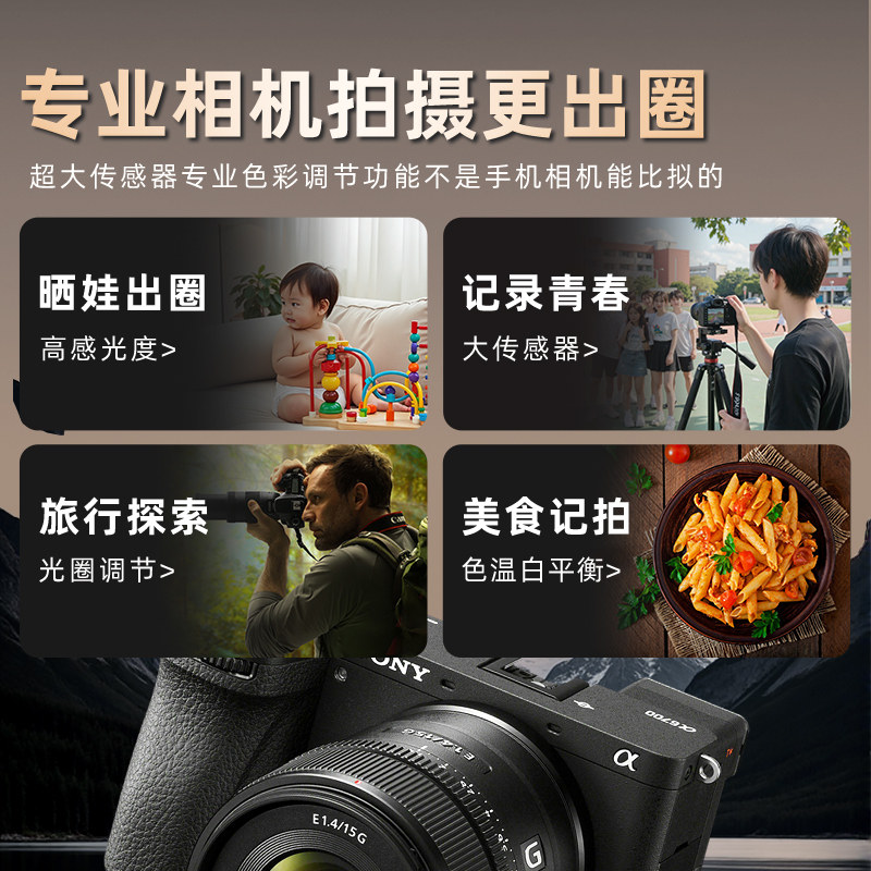 索尼A6000 A6400 A6700学生入门专业级摄影VLOG 单反相机微单相机