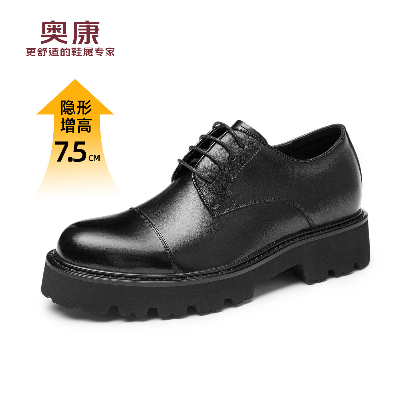 【内增高】奥康男鞋春秋季新款商务德比鞋男真皮舒适通勤男士皮鞋