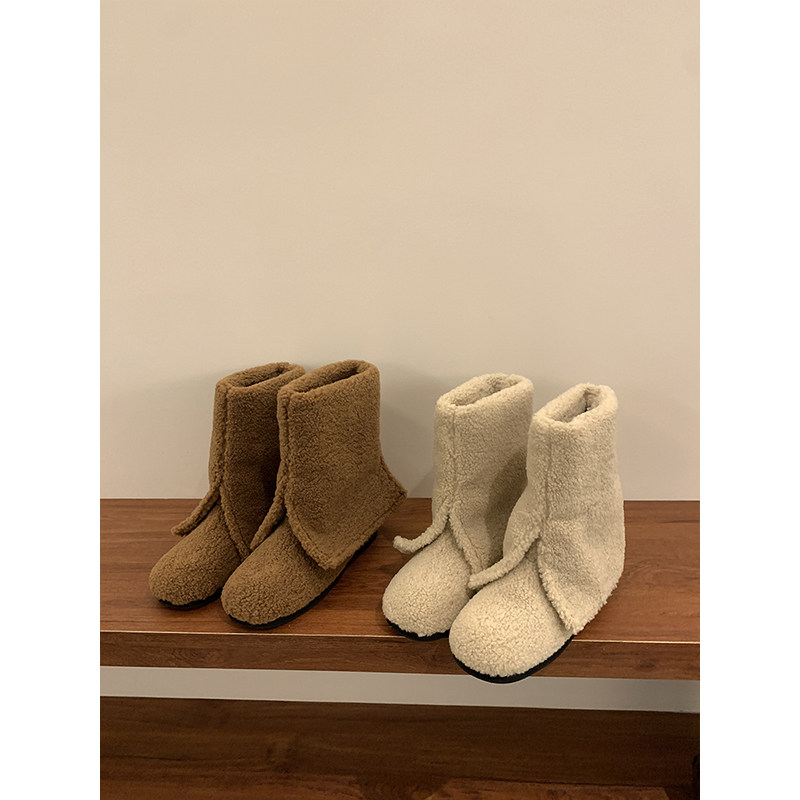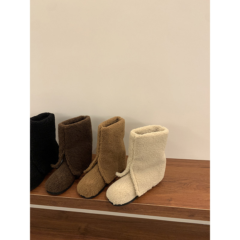 网红圆头开叉羊羔毛毛内增高雪地靴2025冬季新款时尚短靴保暖棉鞋