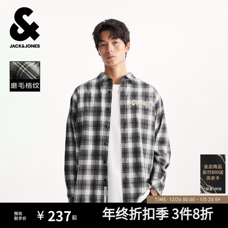 杰克琼斯男装衬衫秋季2025年新款格纹休闲衬衣外套宽松通勤男士潮