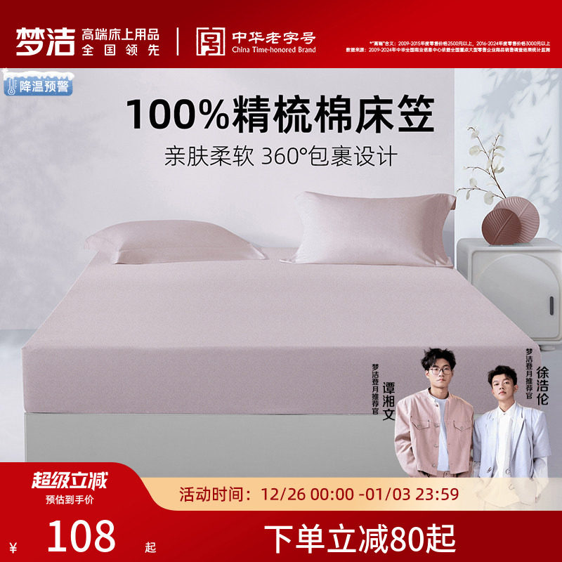 梦洁家纺床笠2025新款四季纯棉全棉夏宿舍床单床罩床套床垫保护罩