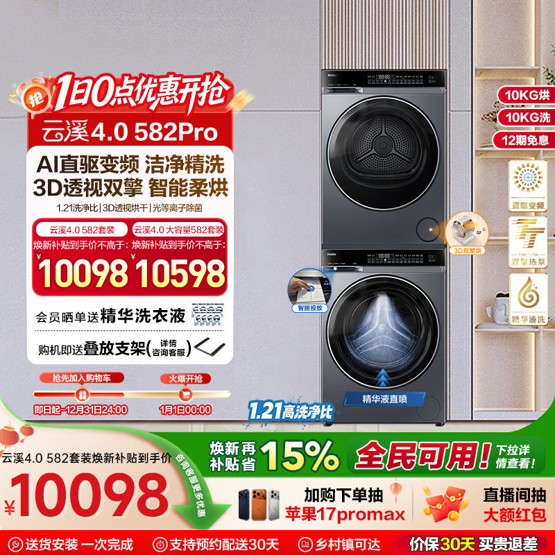 【云溪4.0】海尔582洗烘套装精华洗衣机热泵除菌螨双智投烘干机