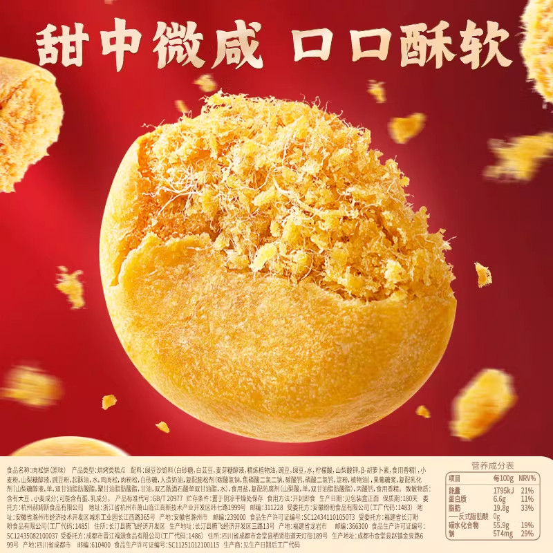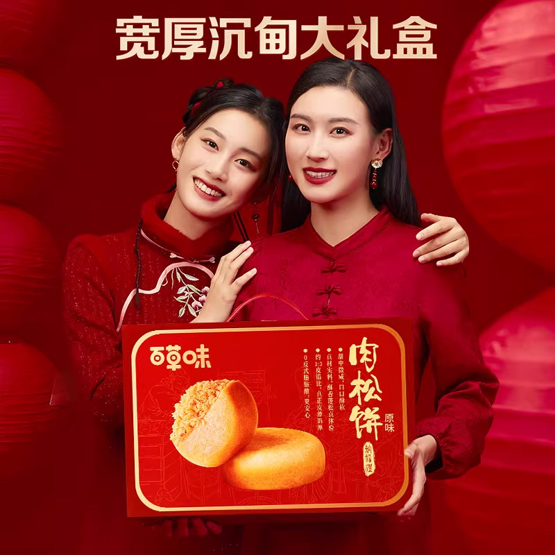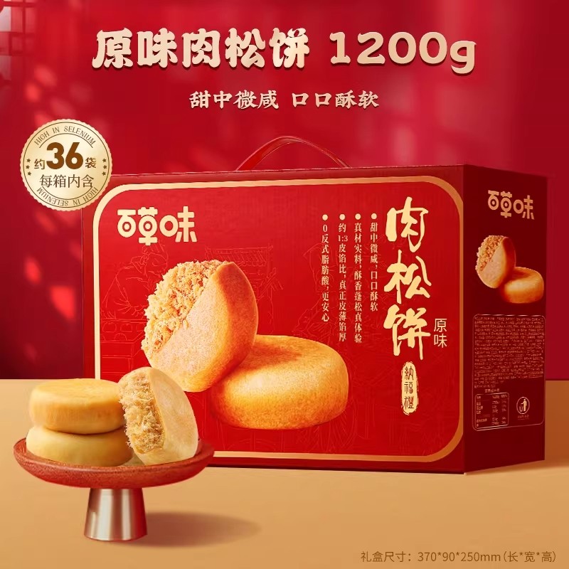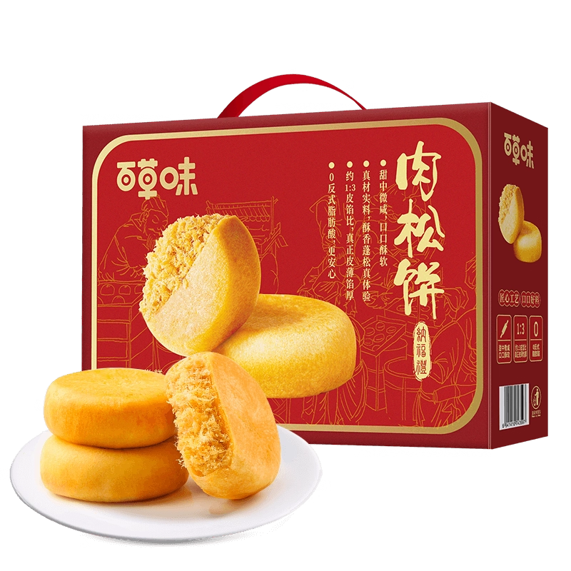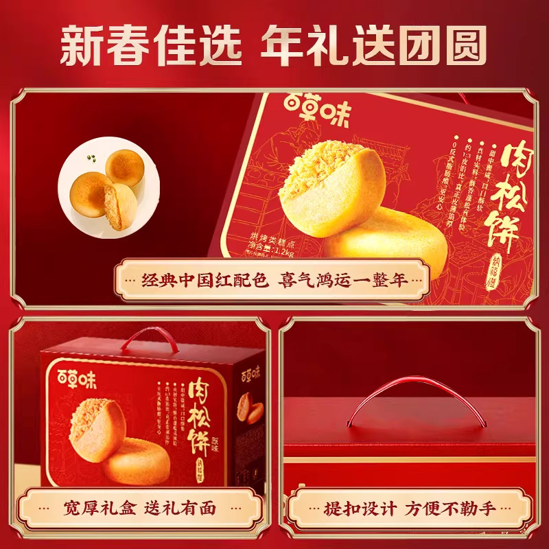 百草味肉松饼年货礼盒1200g休闲零食糕点心面包健康食品送礼