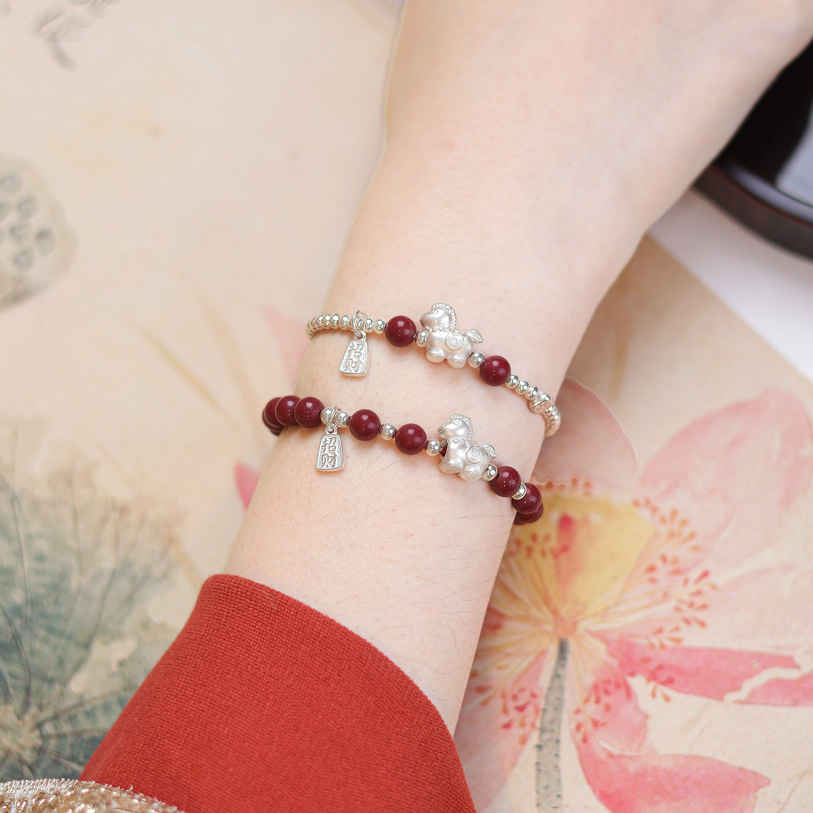 2026足银生肖马本命年手链女款朱砂手串正品纯银饰品礼物转运珠