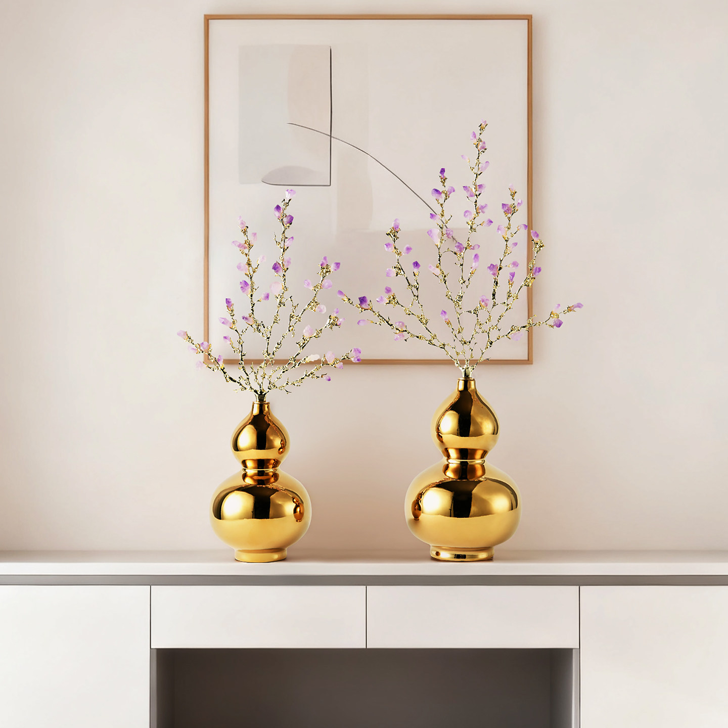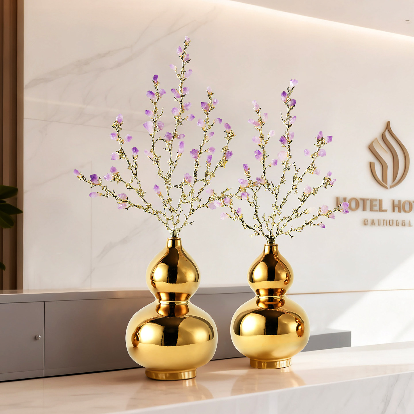 葫芦摆件客厅玄关电视柜家居紫晶树摆设陶瓷葫芦镀金装饰品花瓶