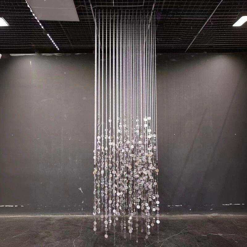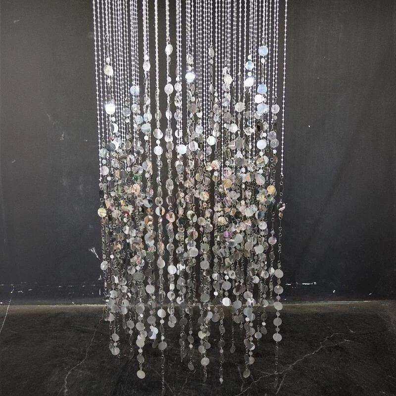 新品亚克力水晶珠帘银色亮片挂件婚庆酒店宴会厅园片吊顶珠链布置