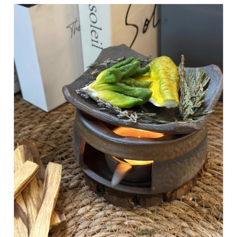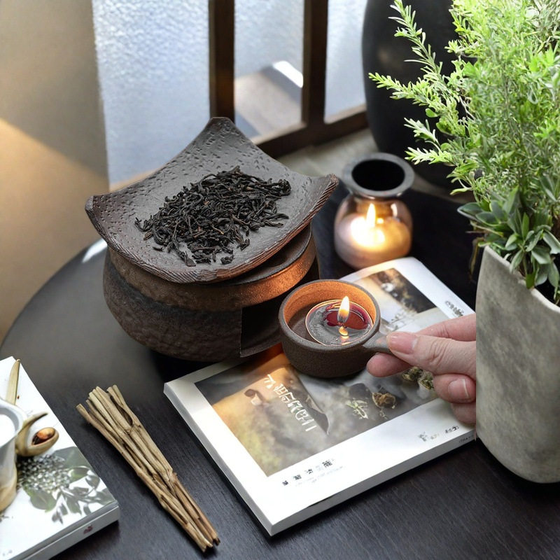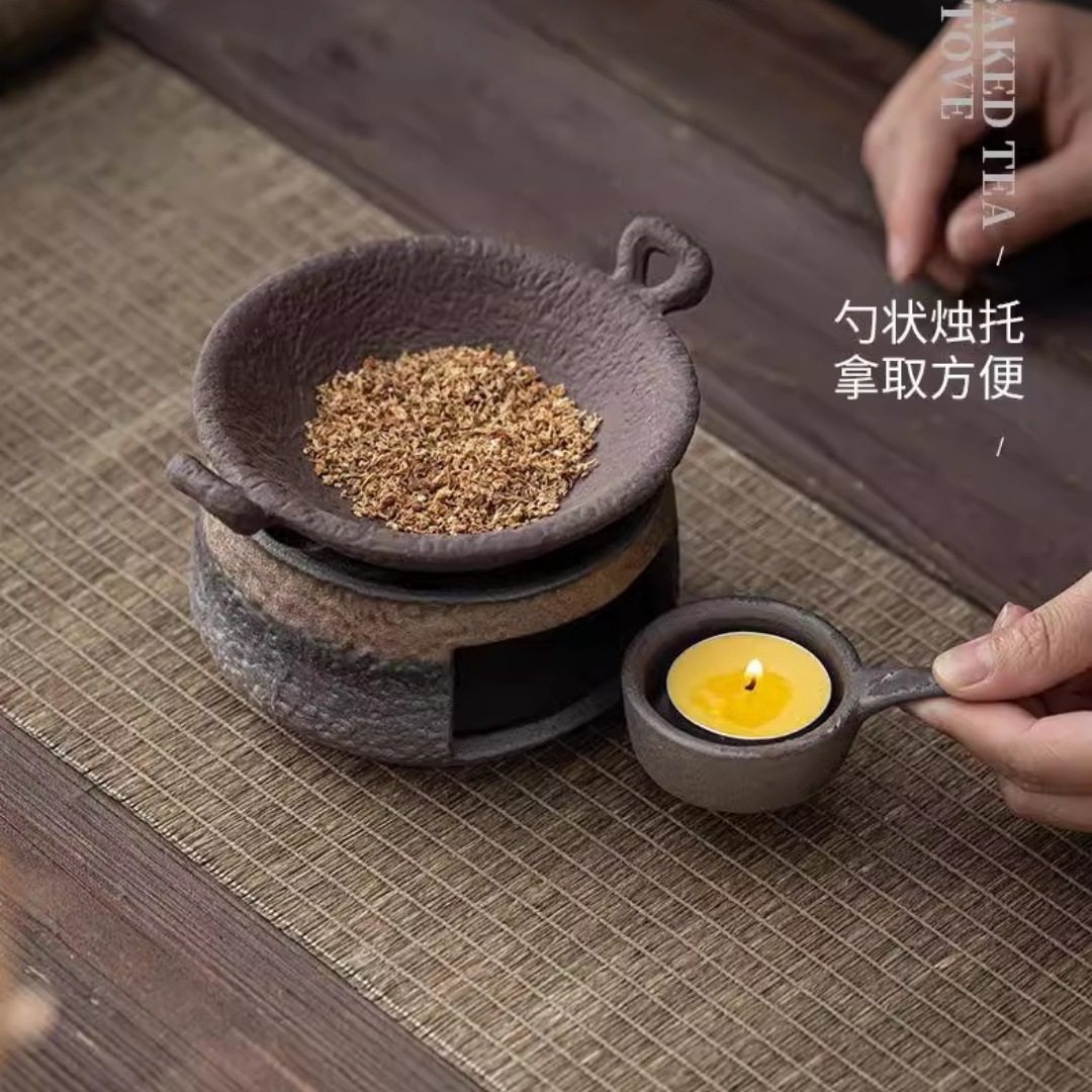 手作日式烘烤炉陶瓷熏香植物雪松香薰炉烤茶炉桌面摆件加热温茶炉