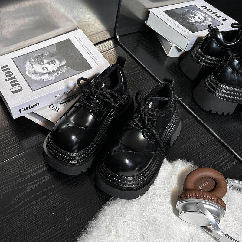 欧货真皮厚底小皮鞋女英伦风圆头加绒德比鞋小个子增高乐福鞋单鞋