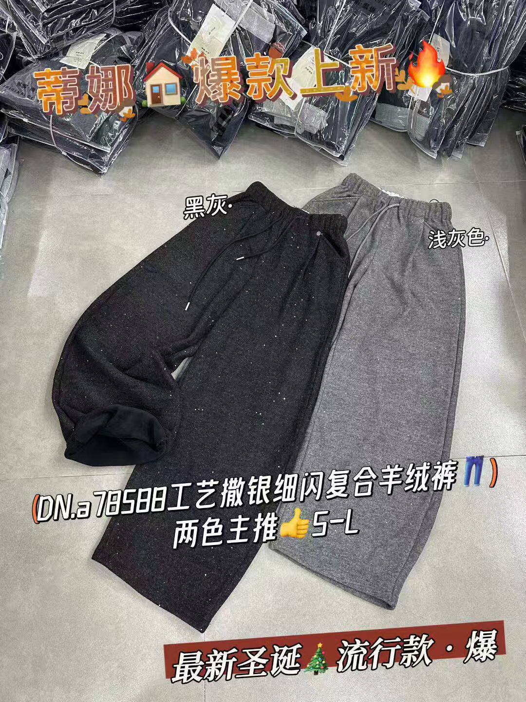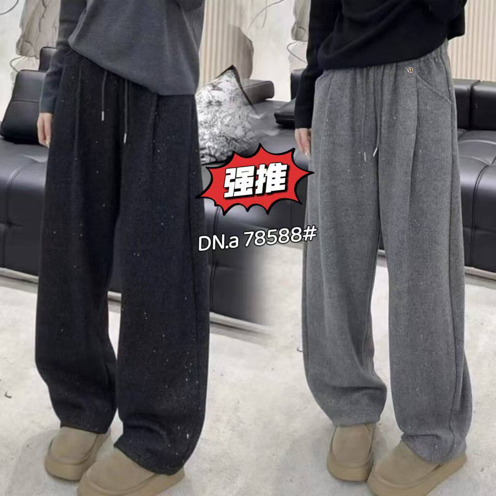 25秋冬新款加绒加厚松紧腰抽绳休闲裤女宽松显瘦阔腿弯刀裤