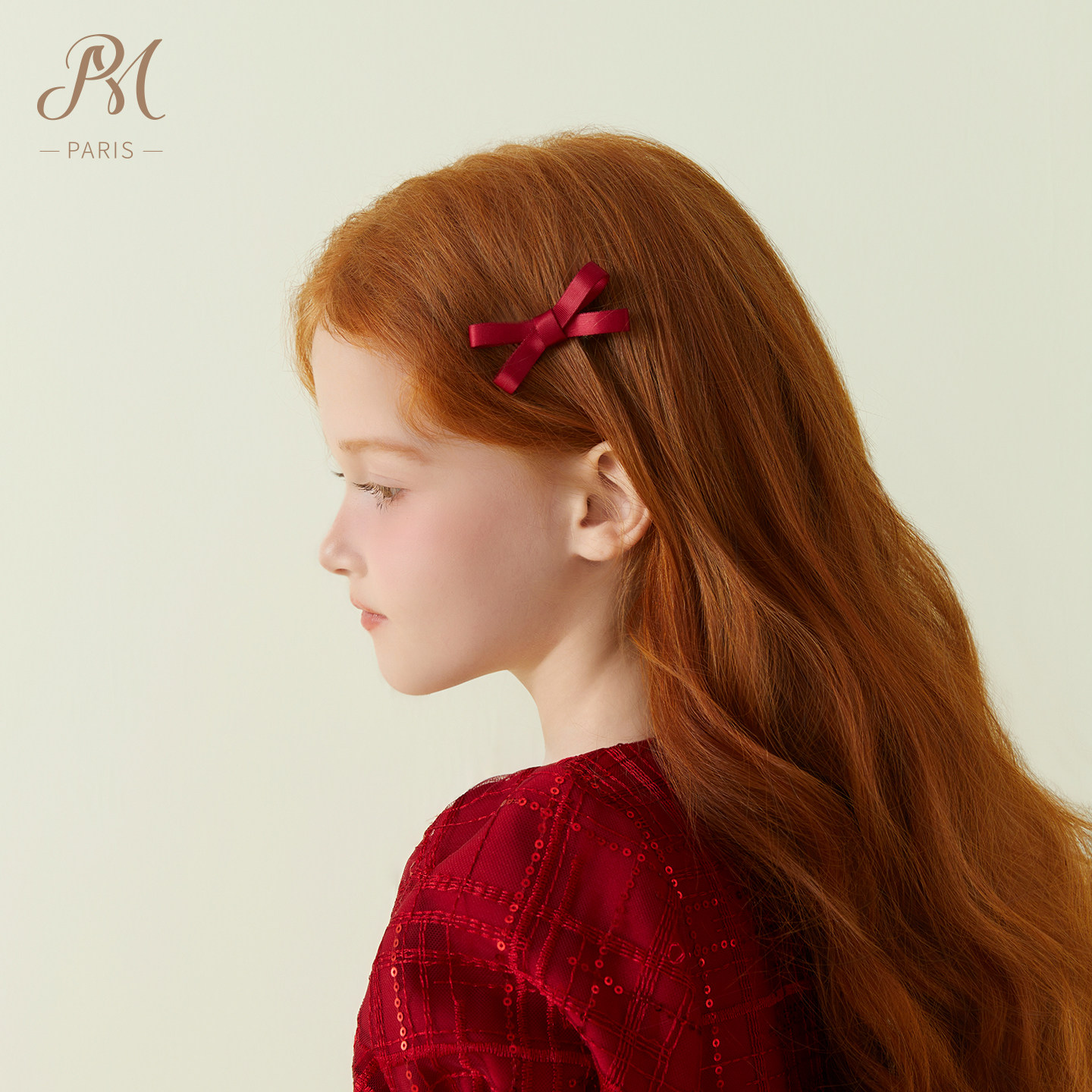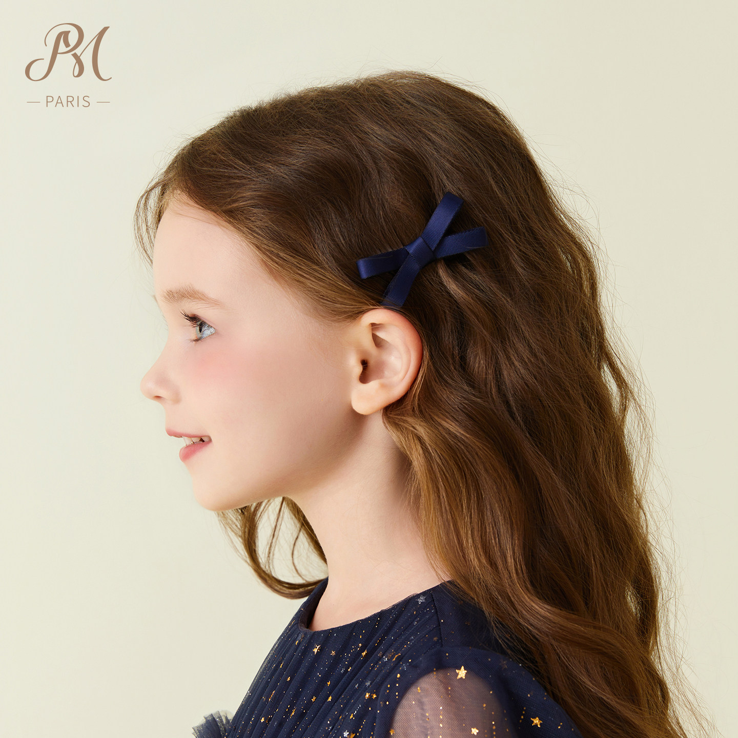 Petite Marguerite小雏菊童装法式少女藏青色&红色缎带蝴蝶结发夹