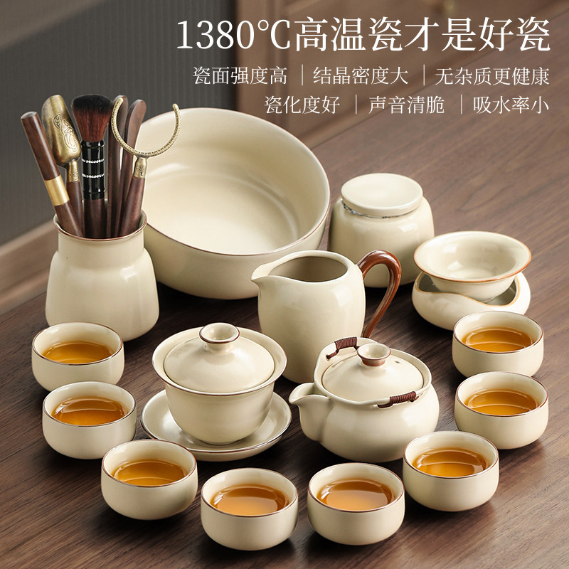 汝窑茶具套装家用新款轻奢高档办公室会客手抓壶功夫泡茶壶喝茶杯