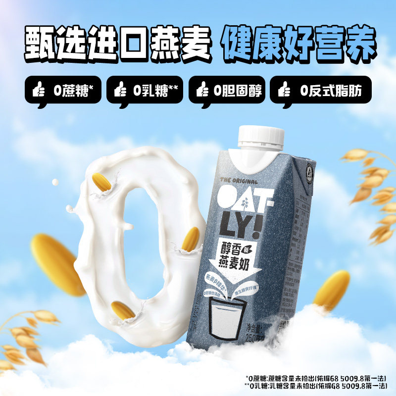 OATLY噢麦力醇香燕麦奶早餐奶植物蛋白饮白饮料0乳糖250ML*6礼盒