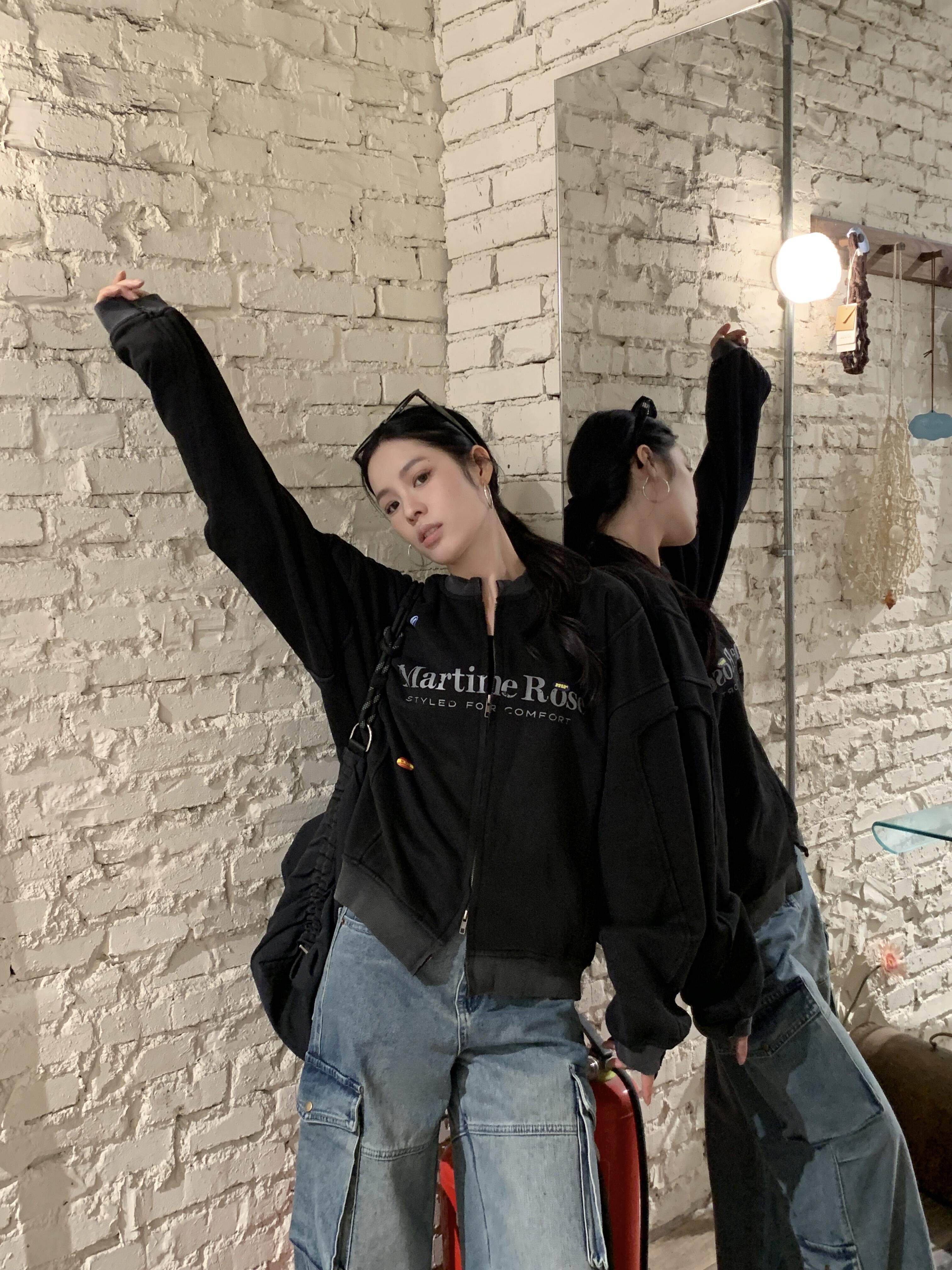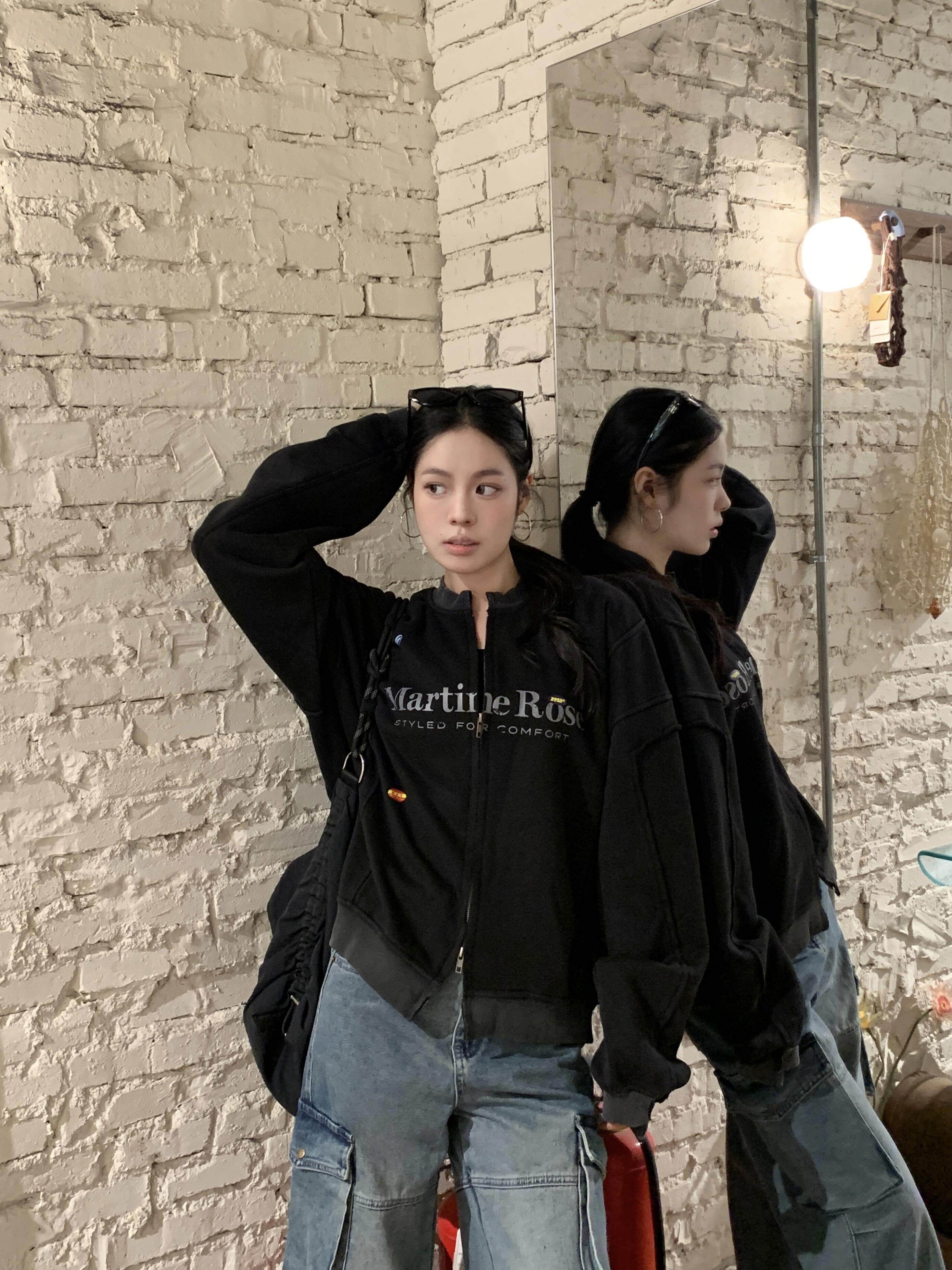 Martine Rose水洗做旧标语Logo涂鸦贴纸印花不规则拉链卫衣外套