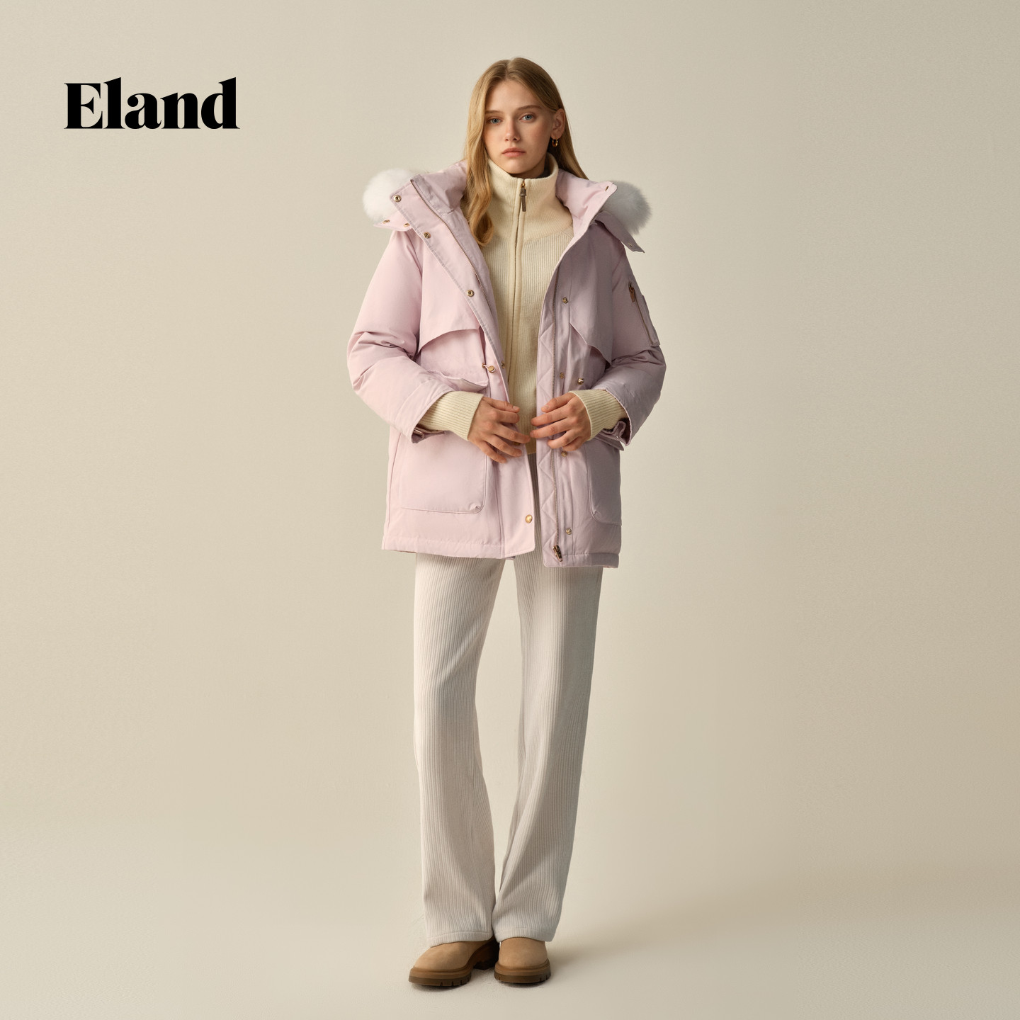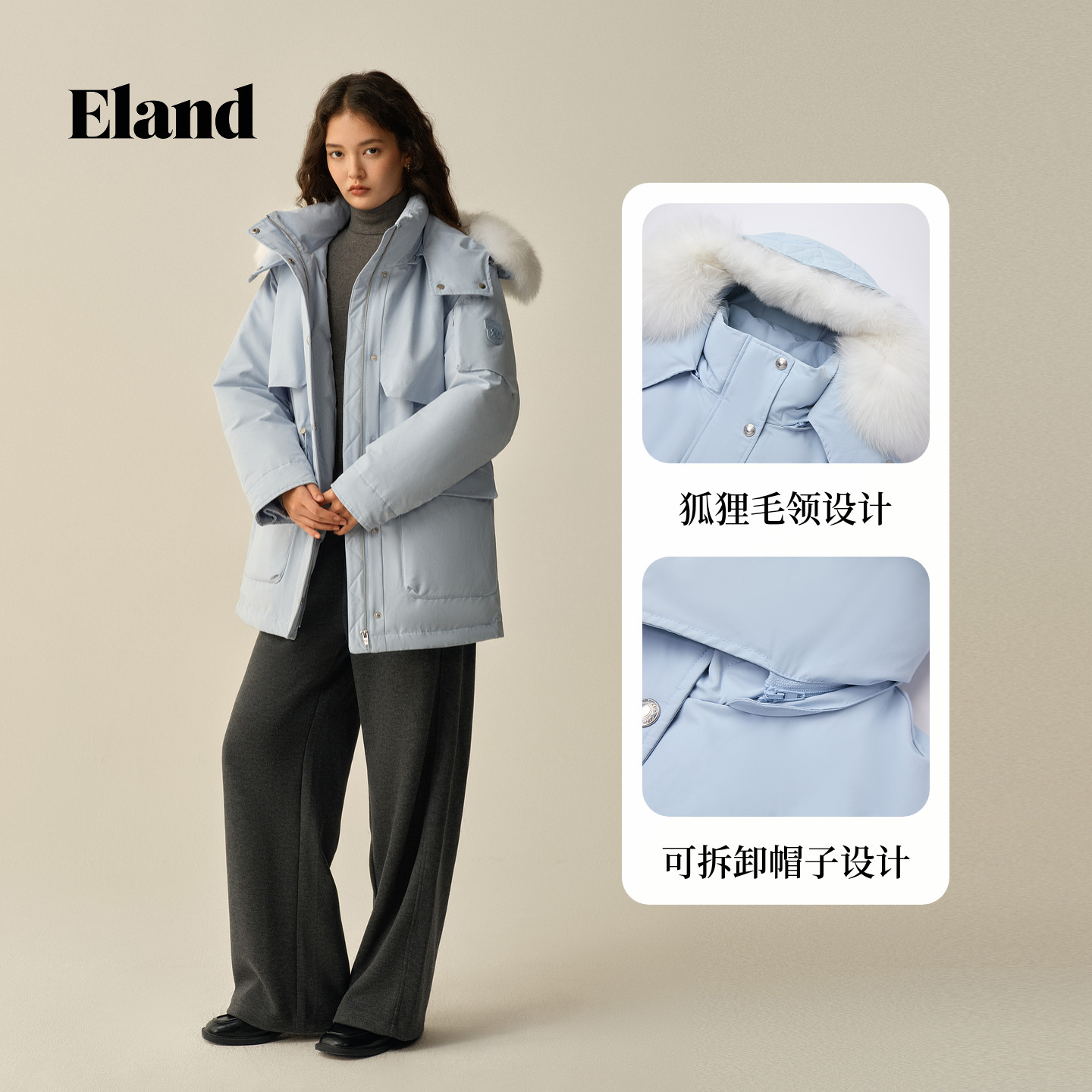 【防泼水&鹅绒】Eland衣恋羽绒服极寒保暖毛领中长外套2025冬新款