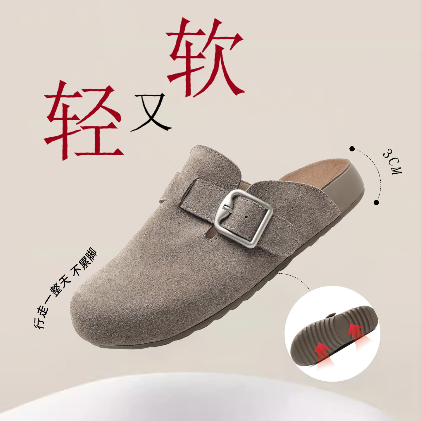 马克华菲软木鞋女鞋2026新款一脚蹬懒人鞋真皮勃肯鞋女半拖包头鞋