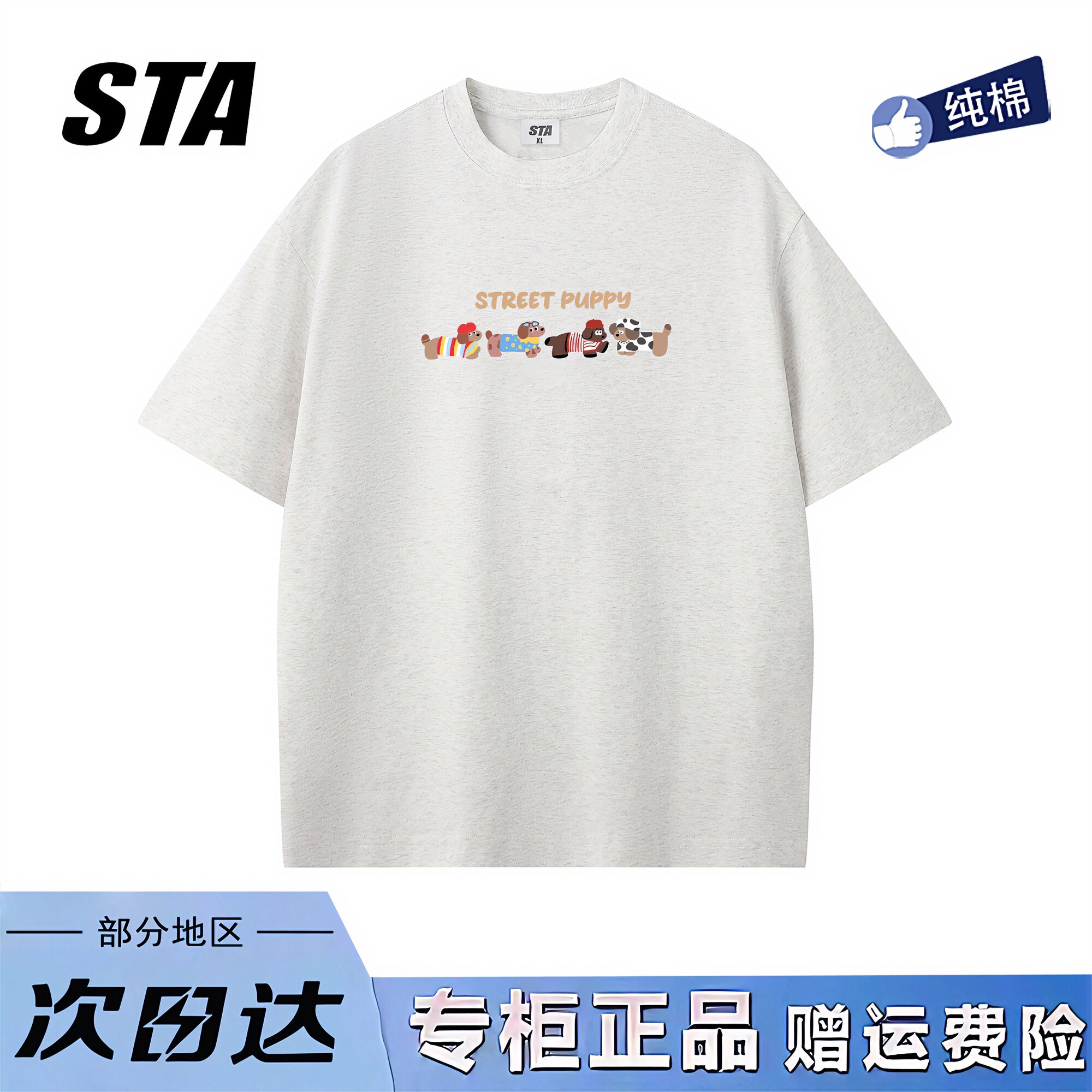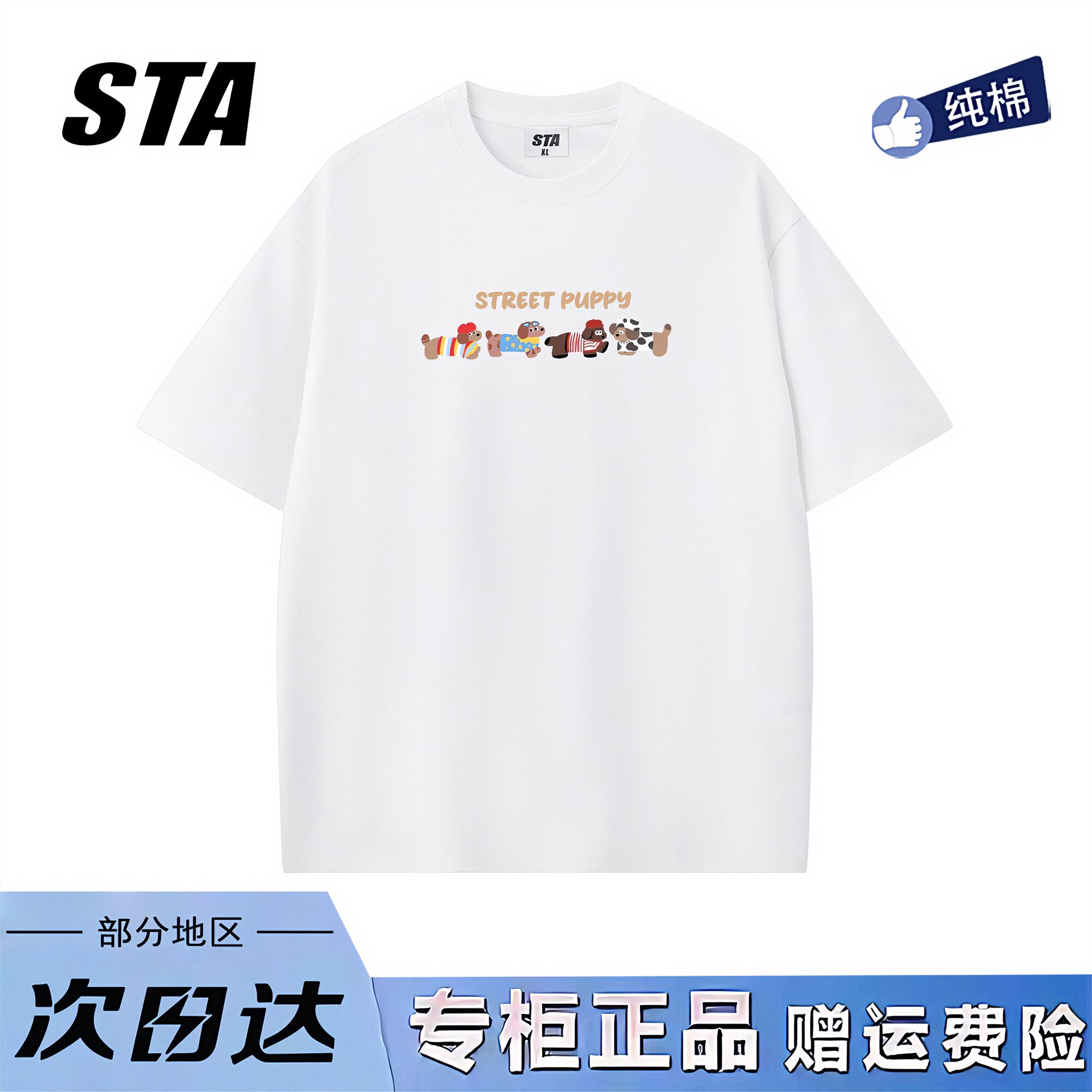 STA旗舰店美式趣味腊肠狗短袖上衣男女夏季潮牌纯棉情侣黑色t恤