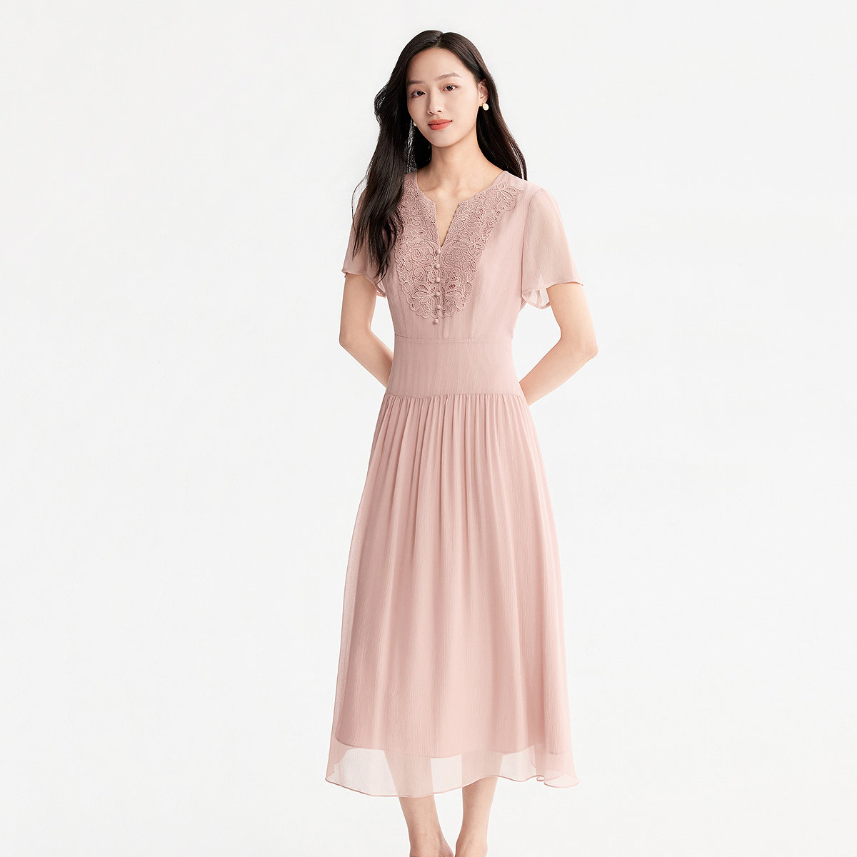 FINITY菲妮迪连衣裙26年夏季新款简约蕾丝收腰优雅显瘦A字长裙女