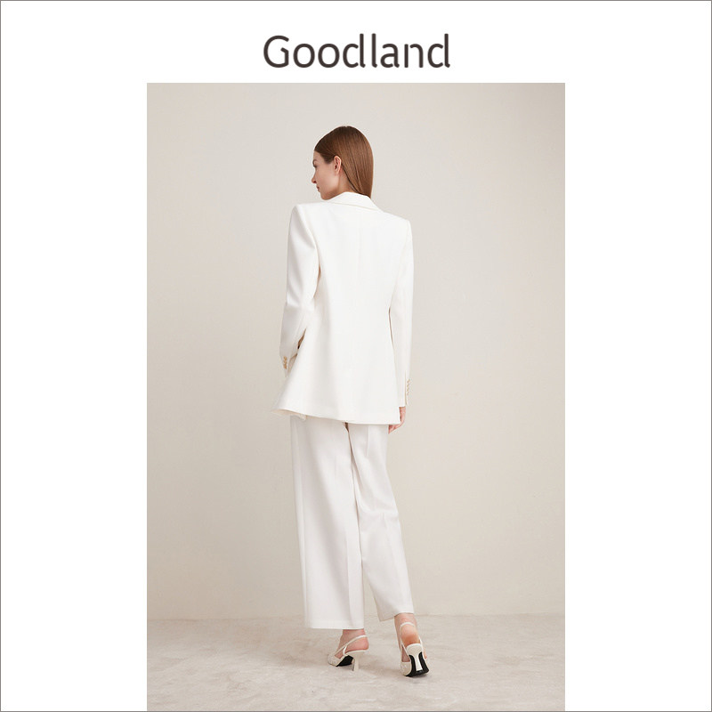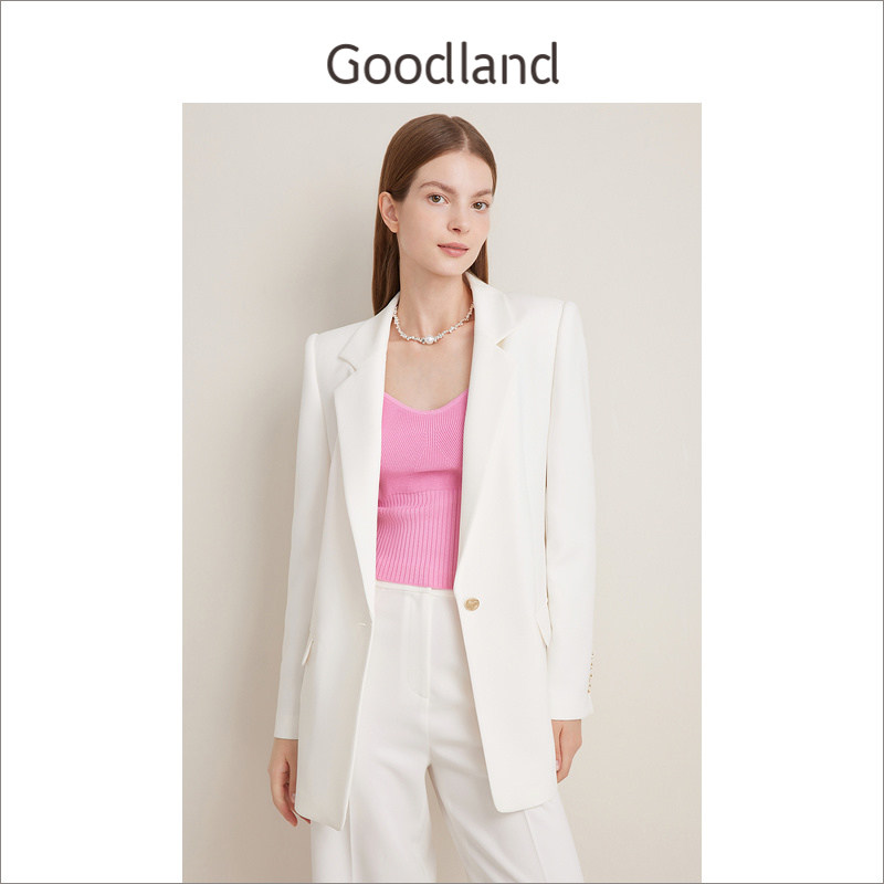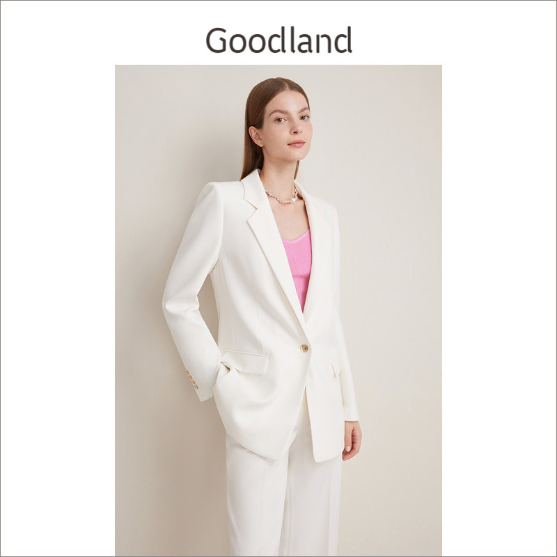 【醋酸系列】Goodland美地春季法式优雅简约白色西装短外套