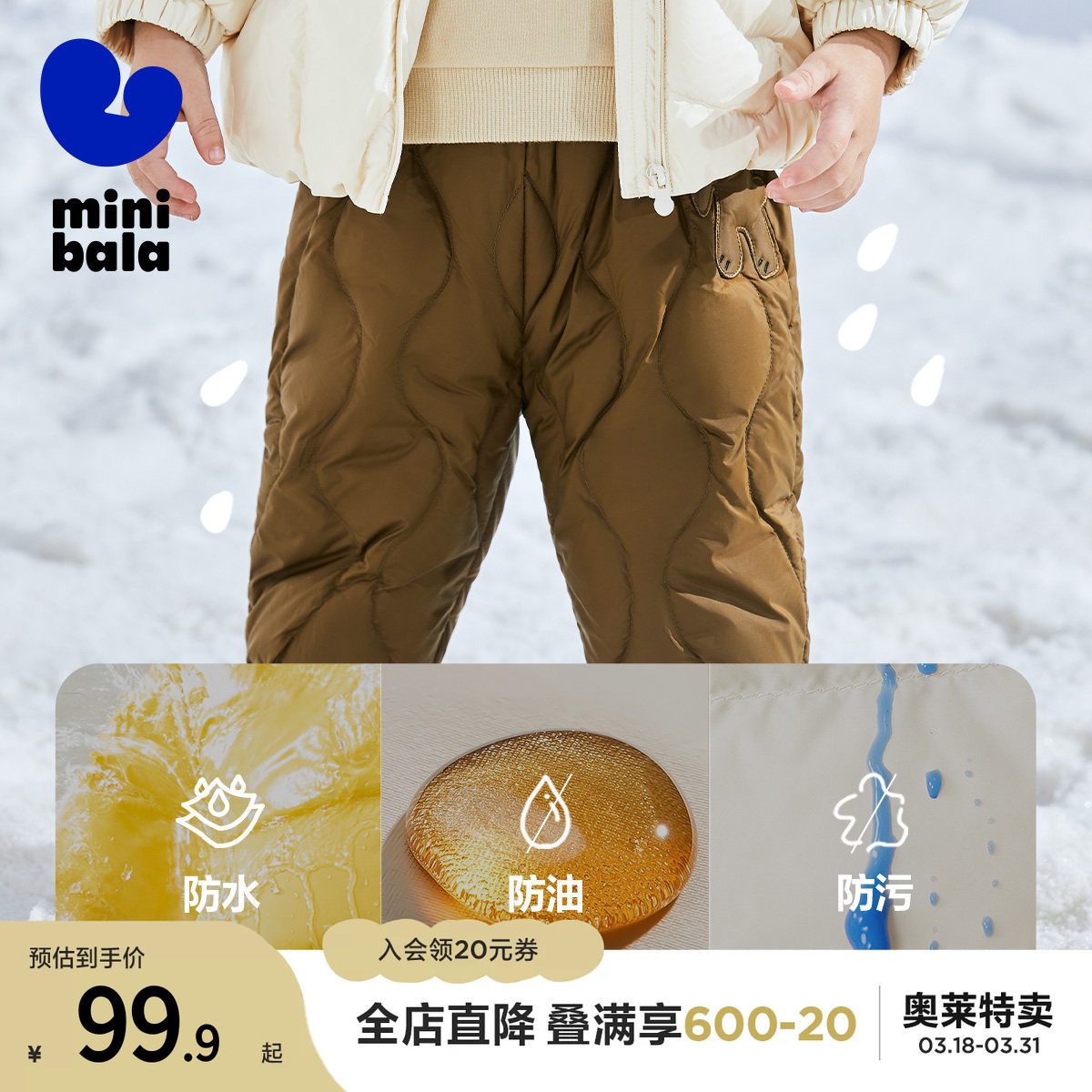 【三防羽绒裤】迷你巴拉巴拉男童女童休闲裤冬季宝宝高腰护肚长裤