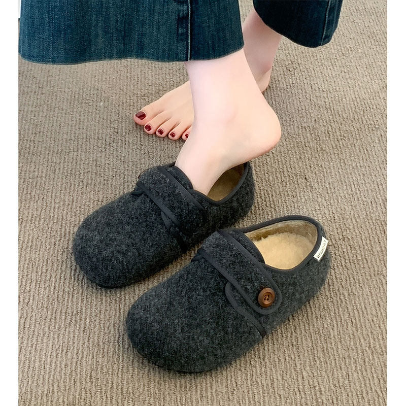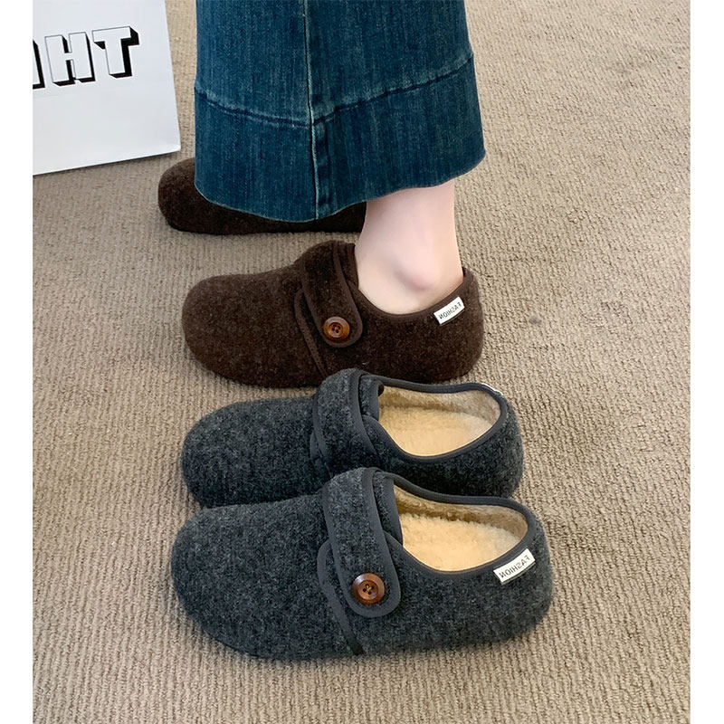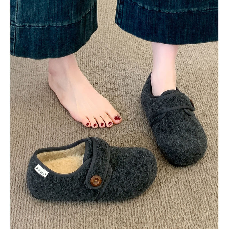 圆典~加绒厚底4cm魔术贴浅口2025毛绒玛丽珍呢子一脚蹬棉鞋25-605