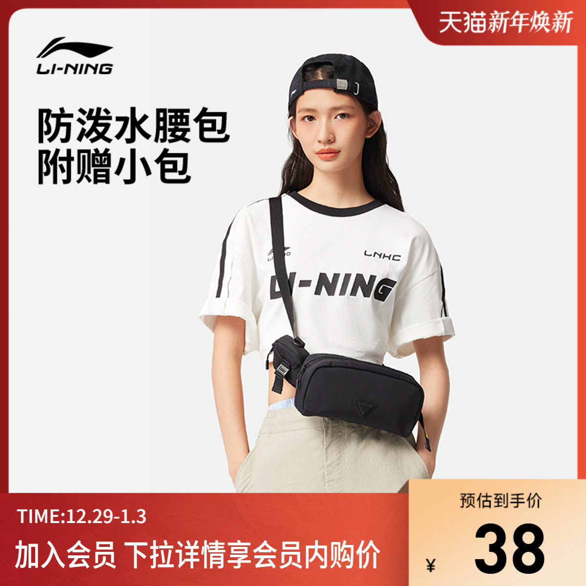 李宁腰包男女同款户外便捷出行防泼水百搭斜挎包休闲运动小挎包包