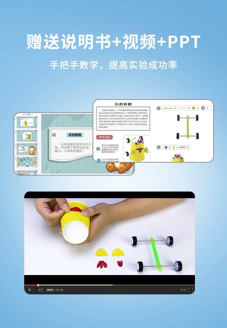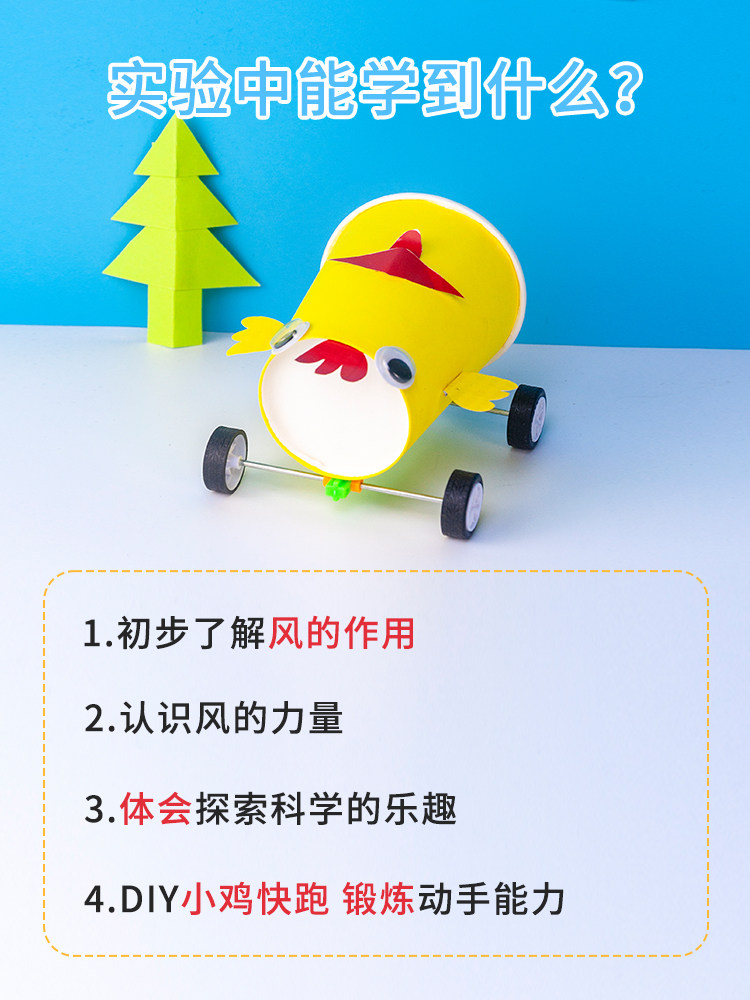 儿童风力小车空气动力车小鸡快跑拼装模型科学实验材料幼儿园手工