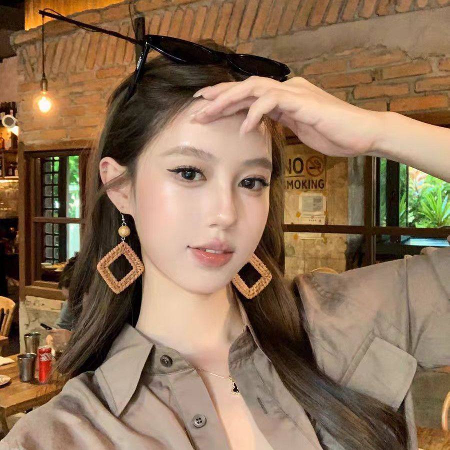波西米亚风民族风长款藤编几何耳环女夏海边度假耳钉独特夸张耳饰