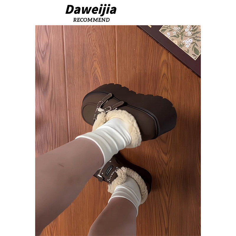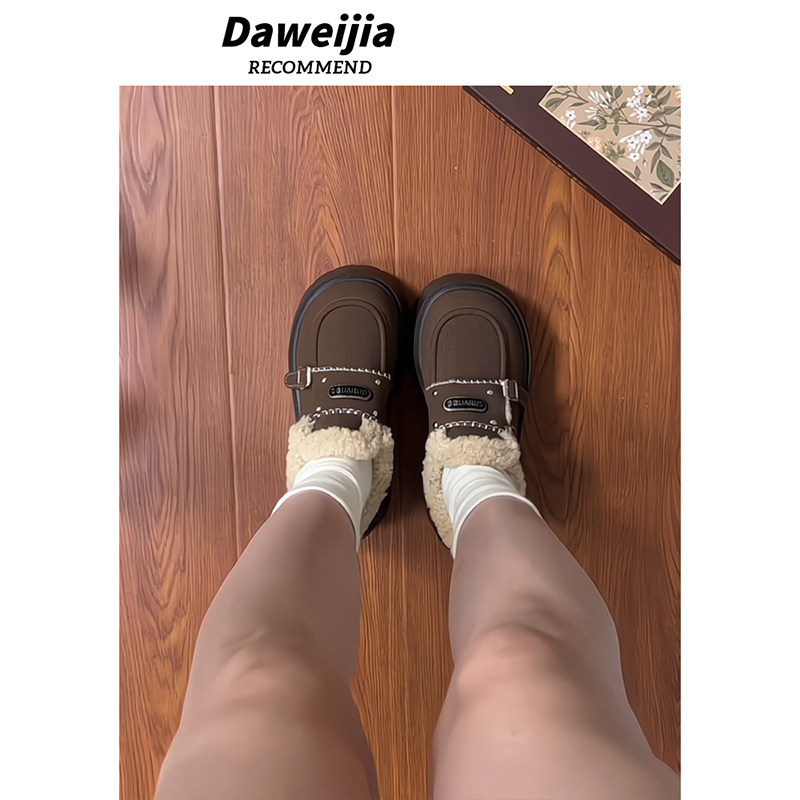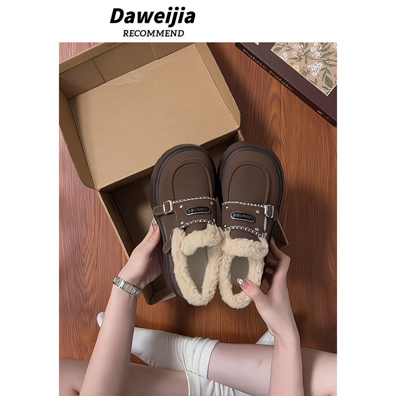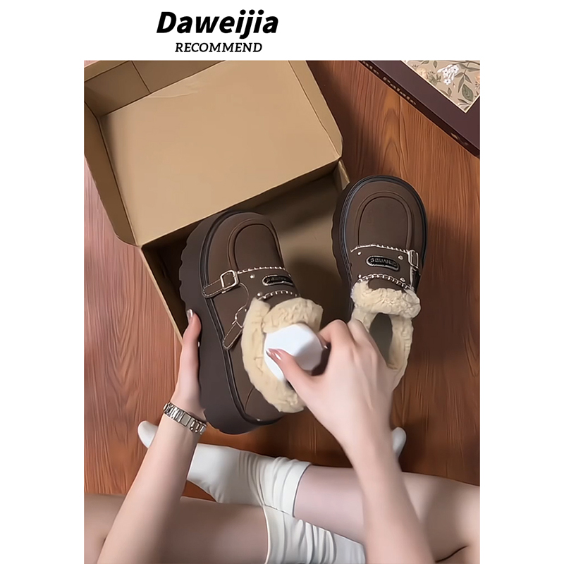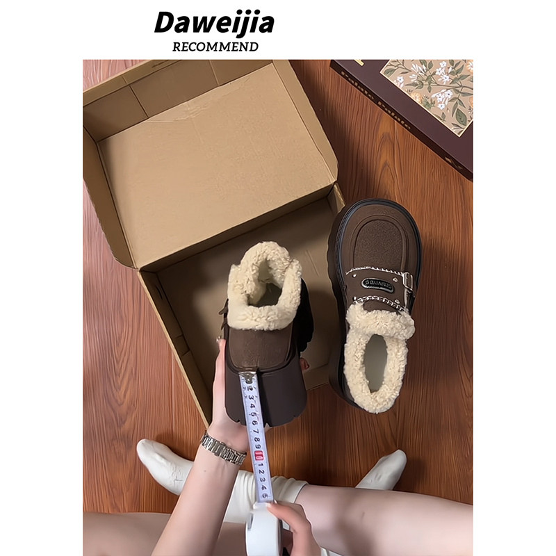 厚底加绒勃肯鞋女2025新款冬季一脚蹬雪地靴百搭保暖毛毛棉鞋高跟