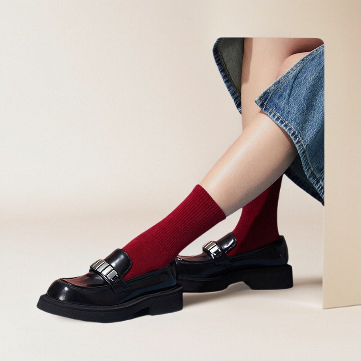 董洁同款真美诗自由之歌柔软水洗牛皮小皮鞋粗跟乐福鞋女男女同款