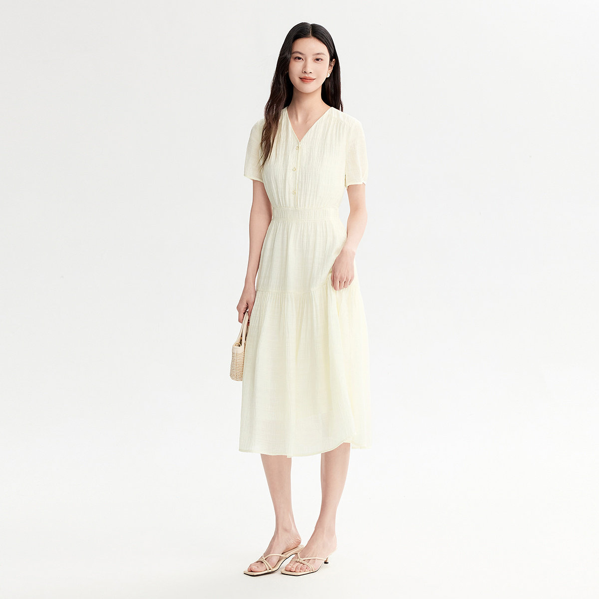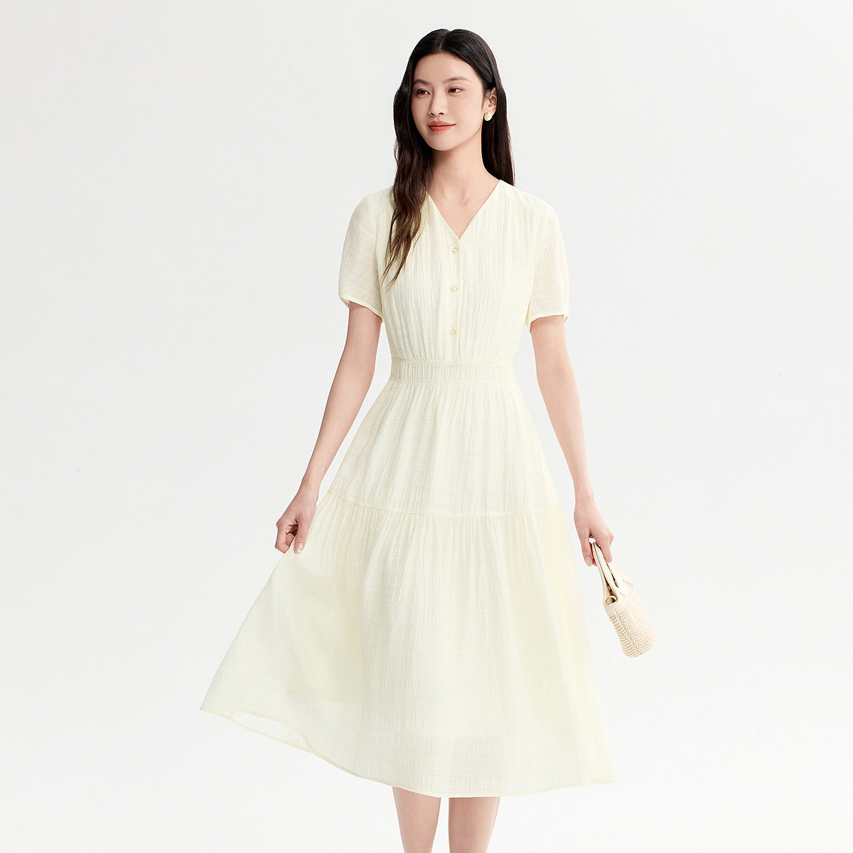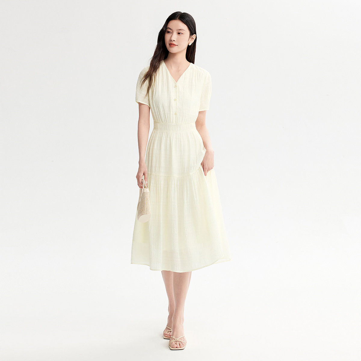 FINITY菲妮迪连衣裙2026年夏季新款简约V领气质优雅名媛风长裙女