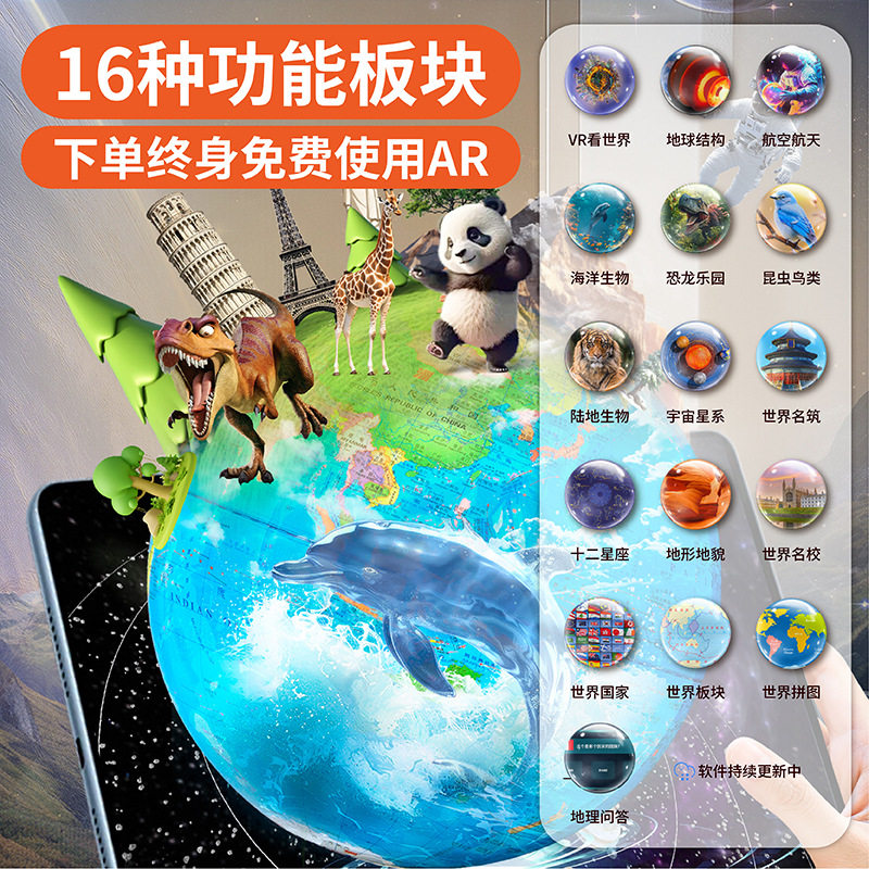 联赢地球仪地理教学款学生用发光摆件初中生小学生用地球仪3d立体