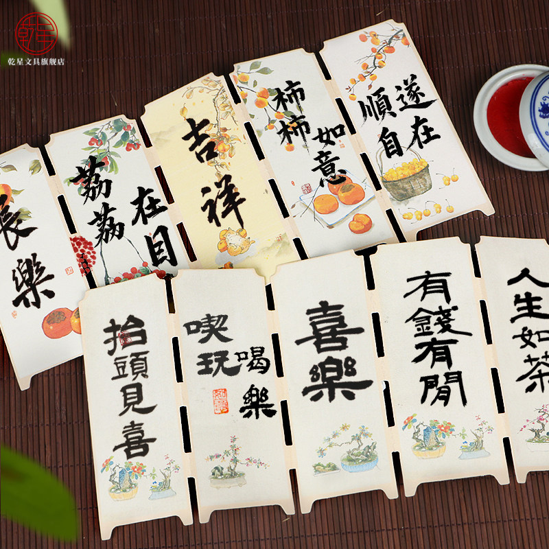 乾星书法屏风桌面摆件宣纸书签折页毛笔手写古典中国风软卡空白册页卡片学生手工diy材料古风文创国画卡纸