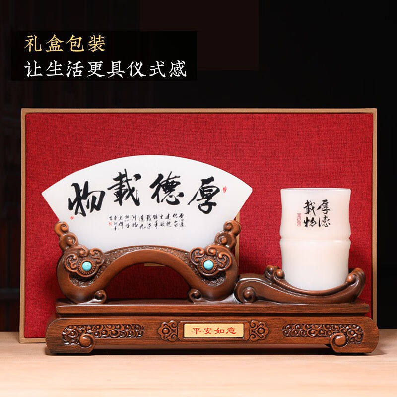 汉京琉璃玉屏风笔筒摆件老板办公室桌面装饰品高档公司开业乔迁礼