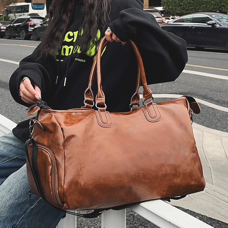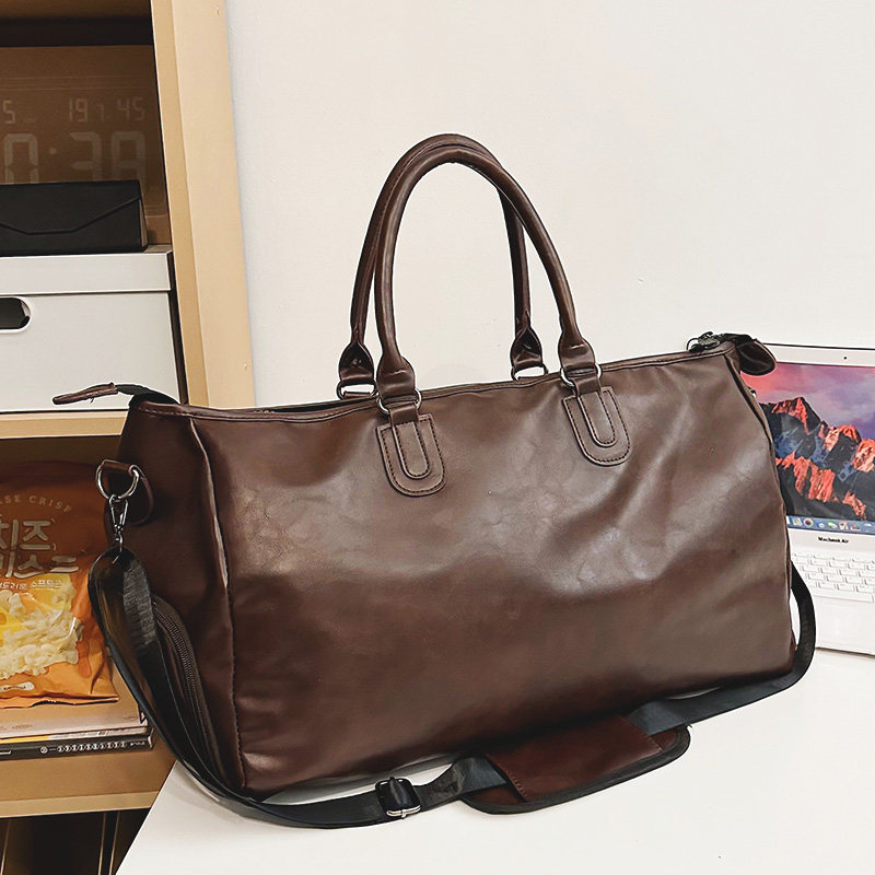 高级感手提大容量短途旅行包PU软休闲运动健身包旅游出差行李袋男