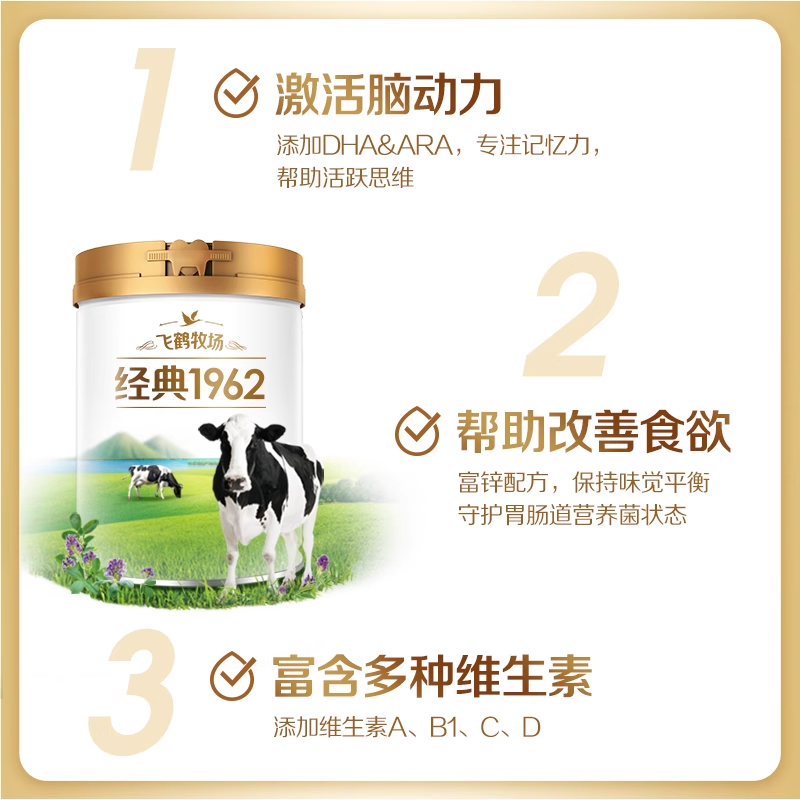 飞鹤经典1962高锌高钙儿童青少年成长奶粉营养牛奶粉便携条装