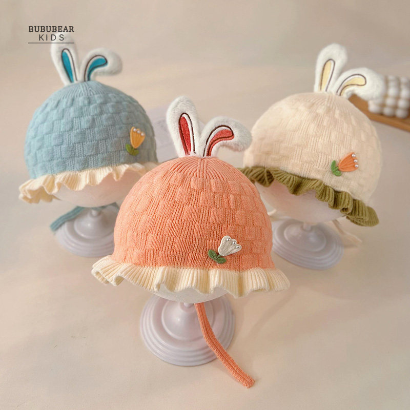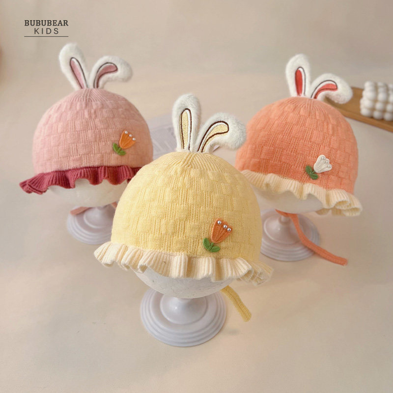 新生儿帽子冬季女宝宝可爱公主针织帽初生婴儿冬天保暖套头毛线帽