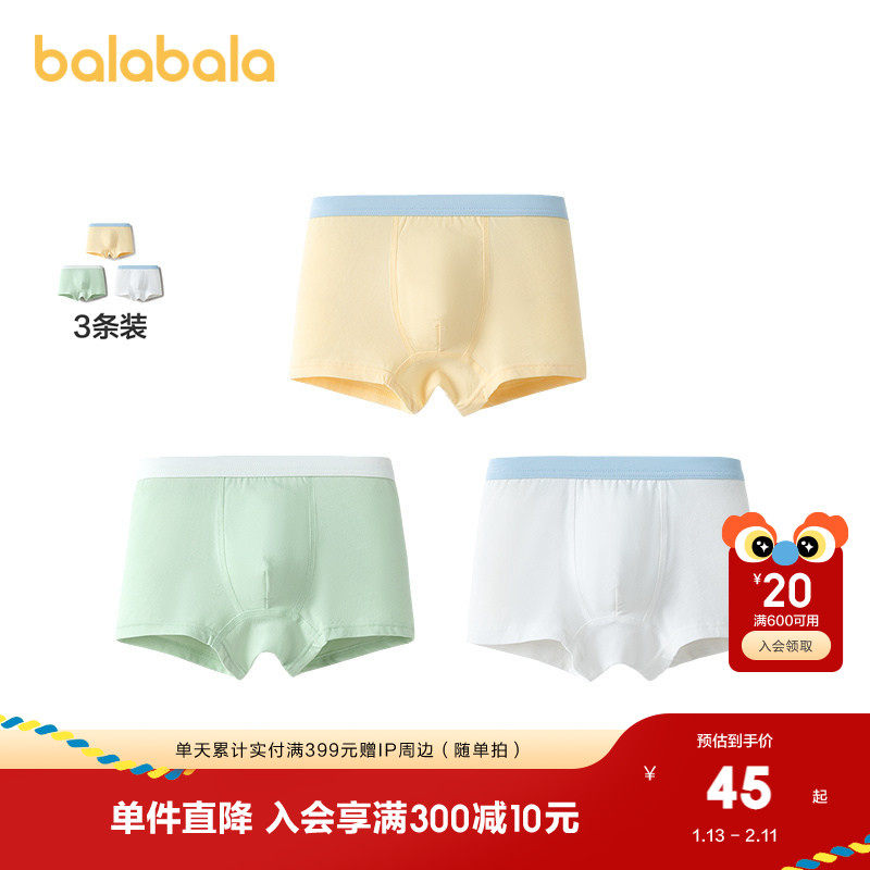 【balaOne】巴拉巴拉儿童内裤棉男童不夹pp抗菌裆四角短裤三条装