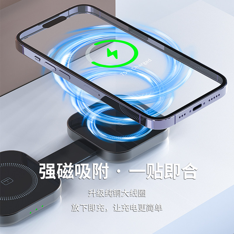 利乐普铝合金三合一无线充电器旅行便捷迷你折叠磁吸快充适用magsafe苹果17手表iPhone16手机AppleWatch耳机