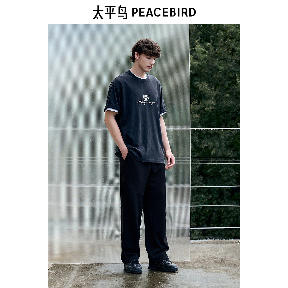 太平鸟男装 胸前印花短袖T恤秋季重磅圆领时尚体恤衫青年内搭