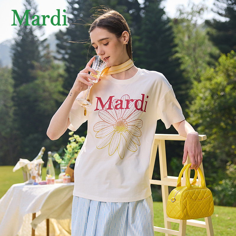 MARDI官方正品2026夏季新款女小雏菊渐变字母时尚短袖T恤百搭上衣