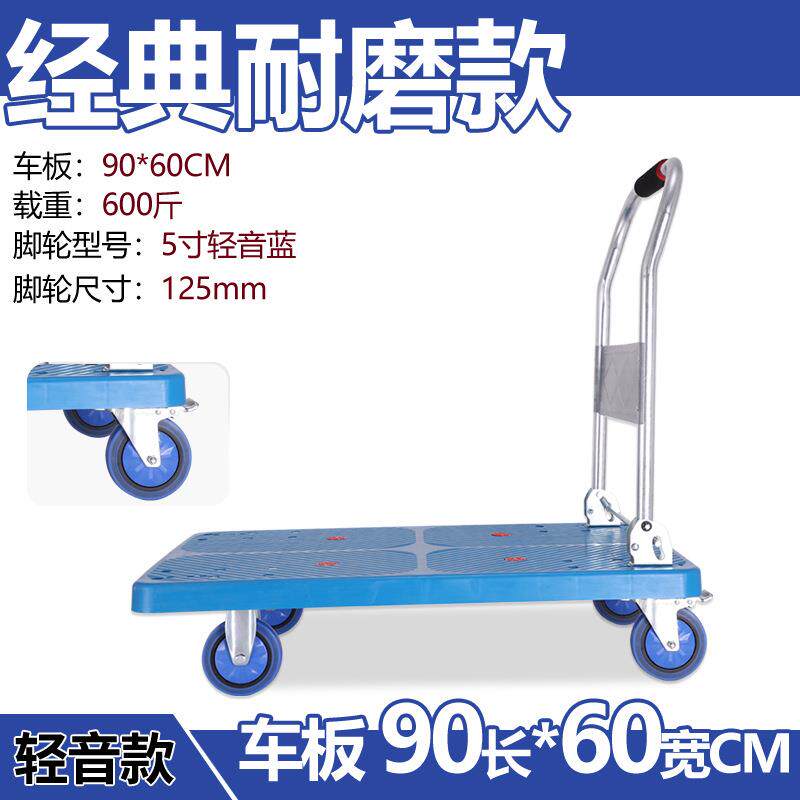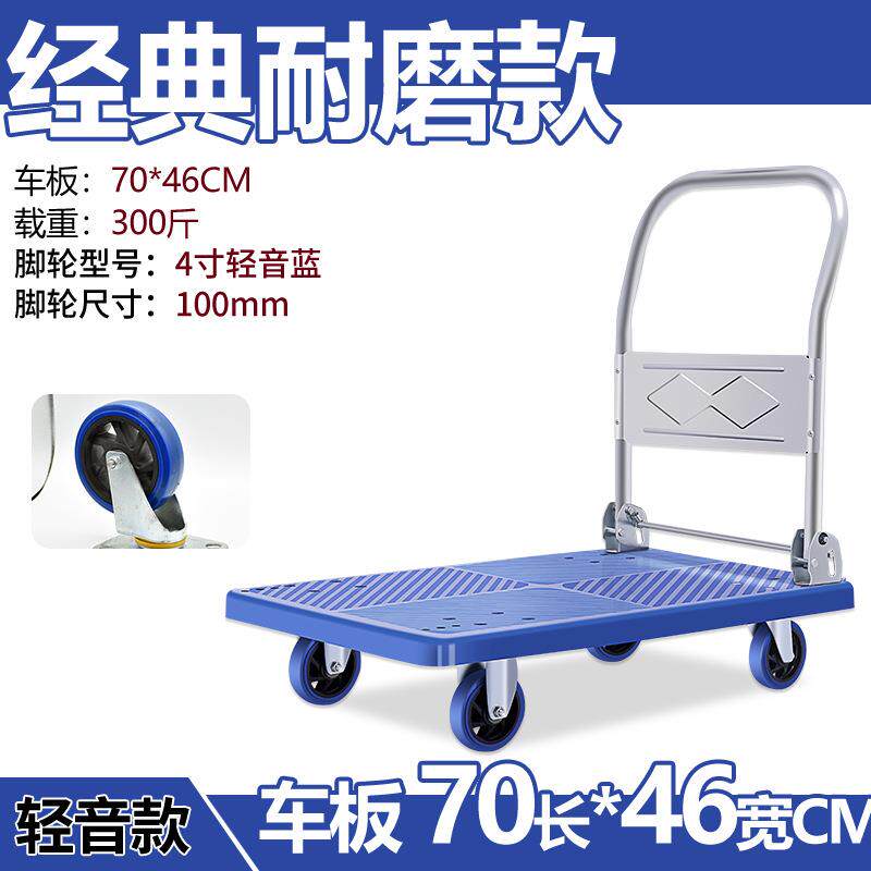 静音平板车塑料折叠手推车仓库搬运车四轮小拖车轻便小拉货车