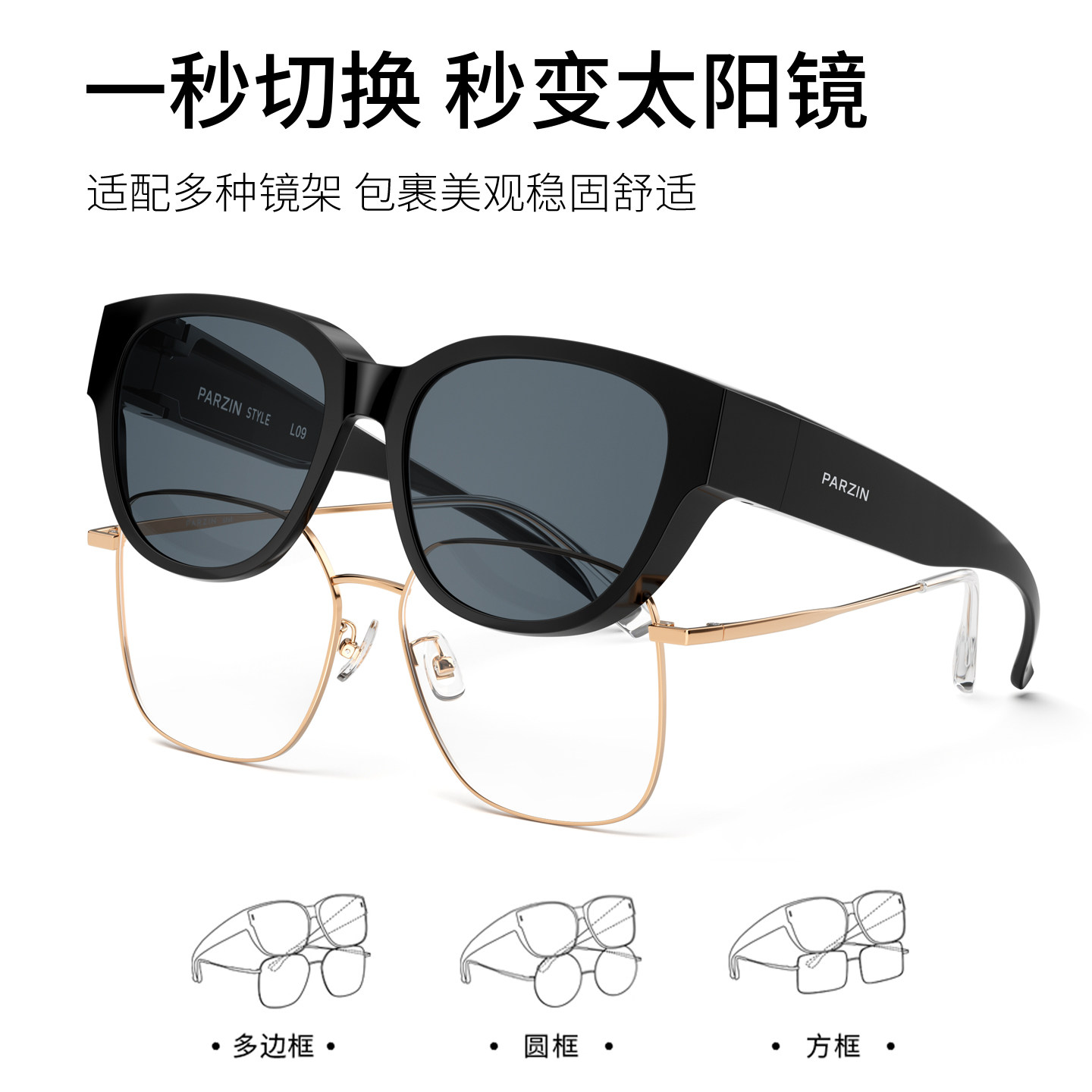 帕森26年新品偏光猫眼套镜男司机开车防晒太阳镜潮墨镜女PZ12135