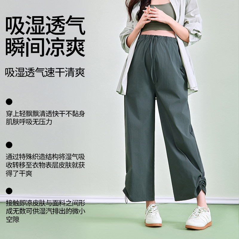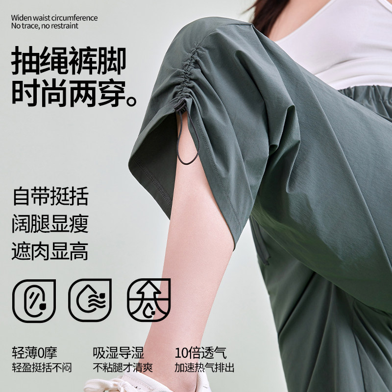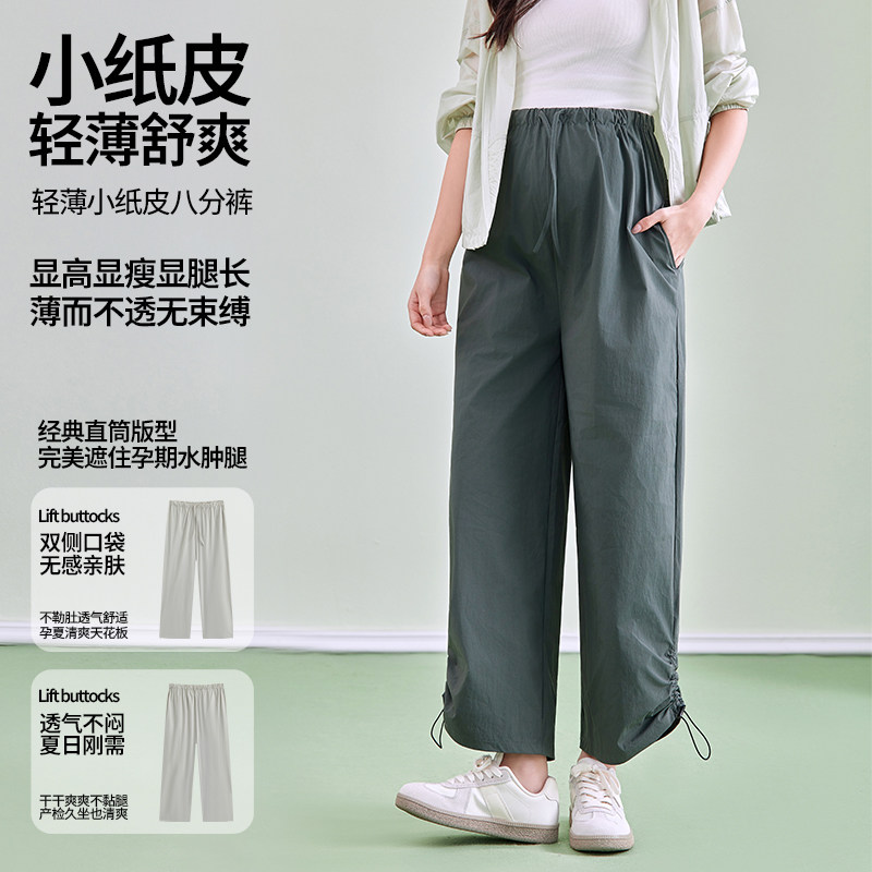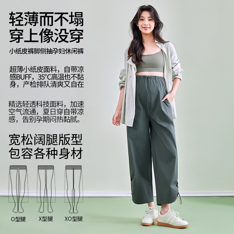 婧麒孕妇裤夏薄款小个子不勒肚子两穿阔腿裤外穿大码休闲裤子春装
