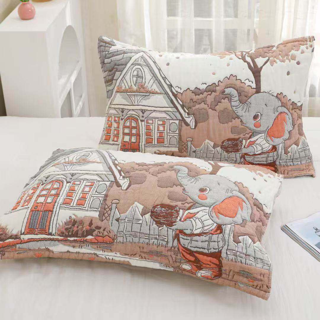 纯棉枕巾八层纱布加厚新款四季通用卡通家用全棉泡芙枕头盖巾吸汗