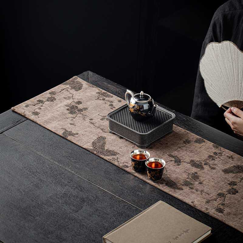 柞蚕丝香云纱老料布席 含蚕丝茶席布艺茶垫 隔热布垫杯垫茶道桌旗