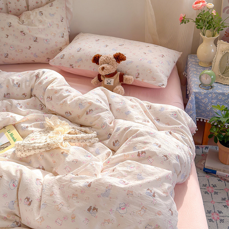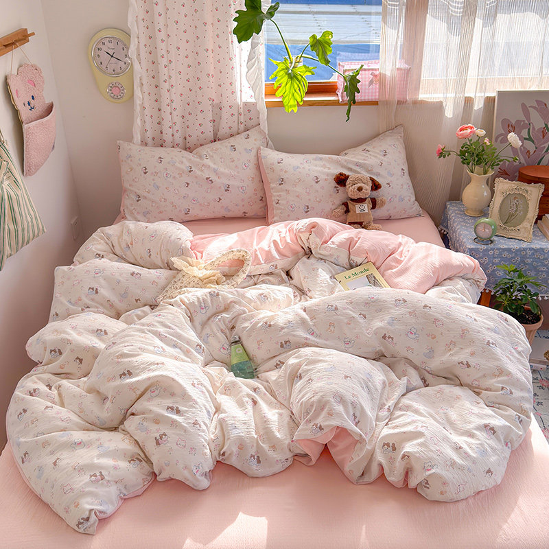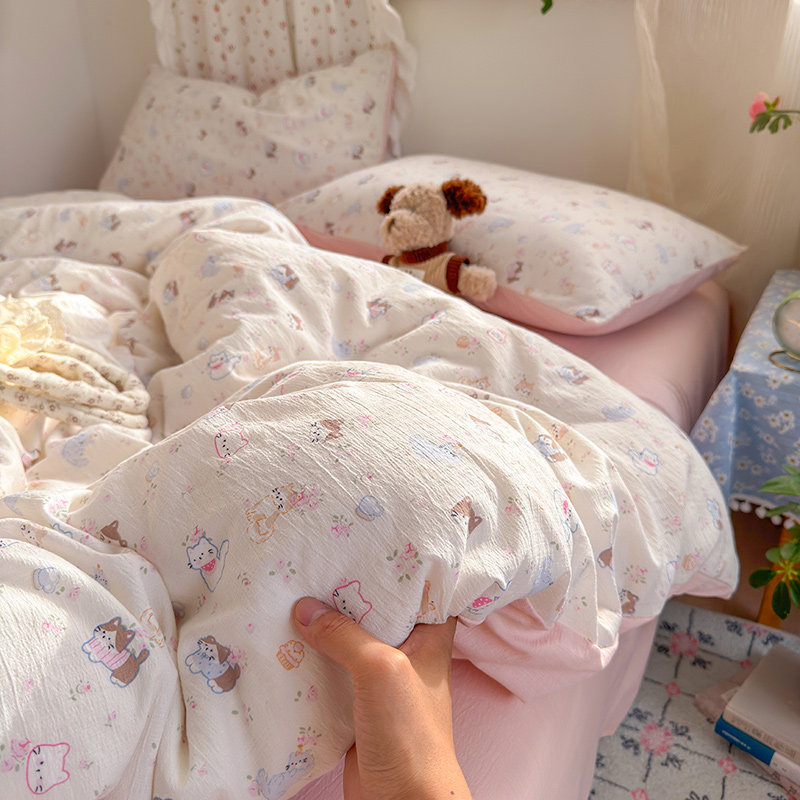 TeenieWeenie全棉水洗棉四件套100纯棉被套床单床笠款床上三件套4