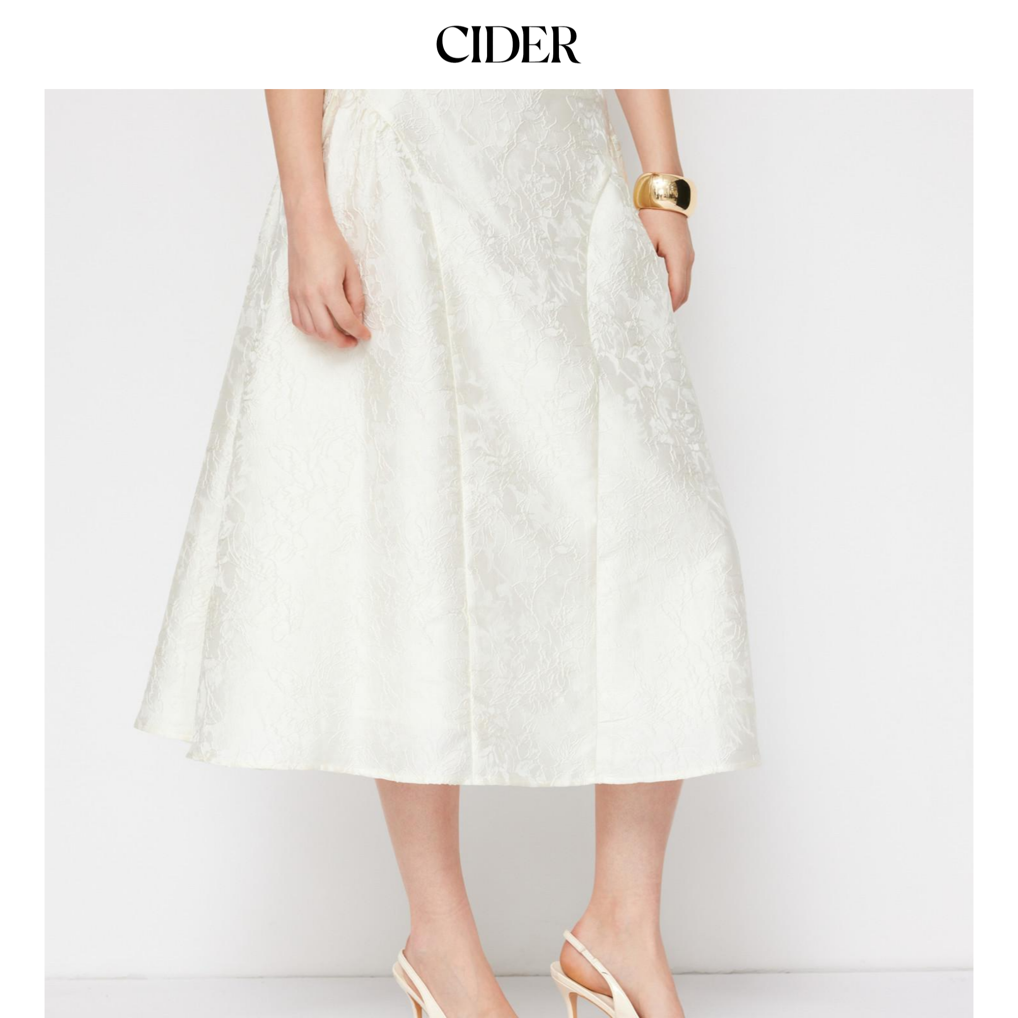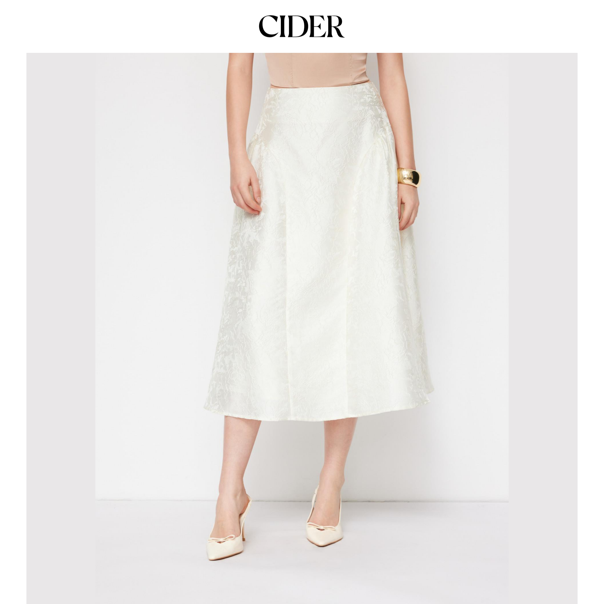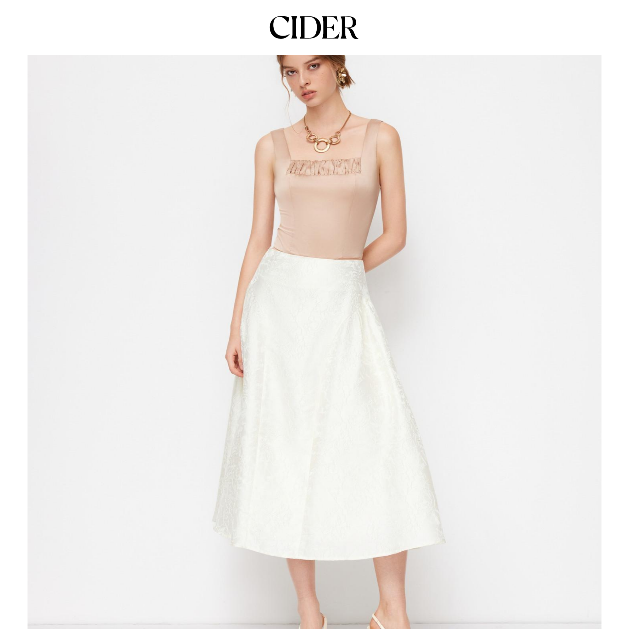 CIDER 春秋女装提花碎花中腰系带中长半身裙114865013