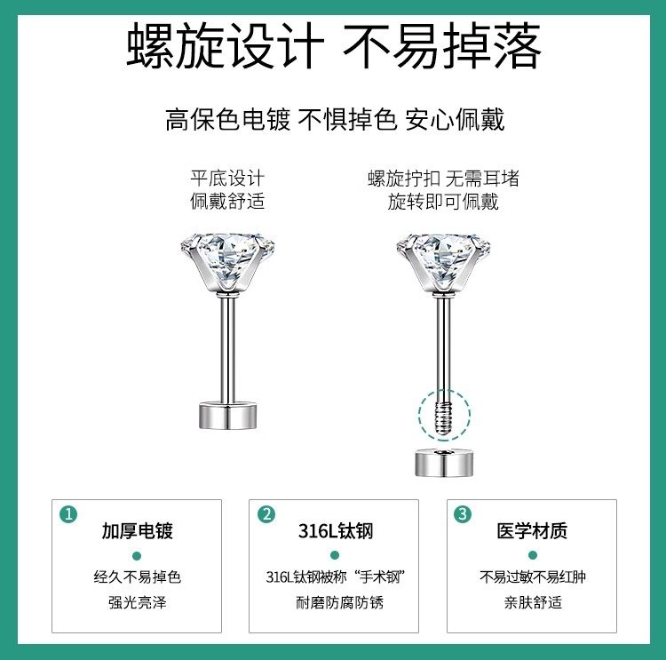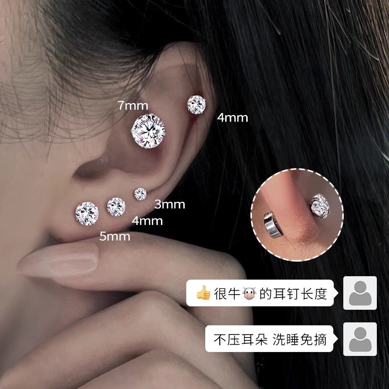 医用钛钢耳钉女养耳洞螺丝钻石耳骨钉钛合金爆款耳蜗钉小耳环耳饰