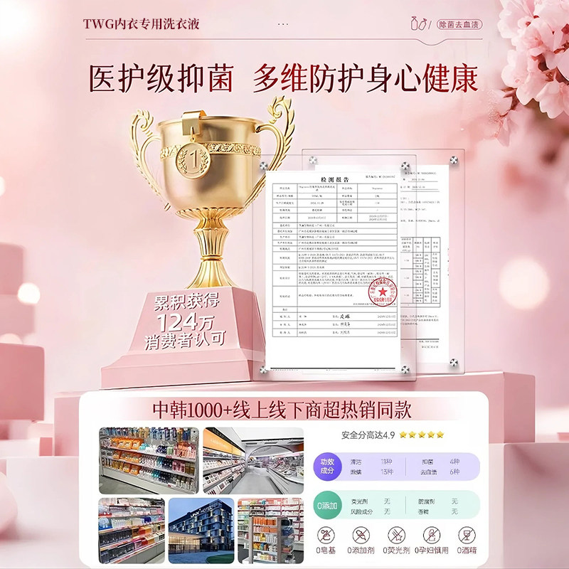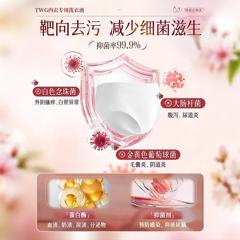 妇炎洁内裤清洗液女士除菌除螨清洗剂祛血渍黄官方专用内衣洗衣液