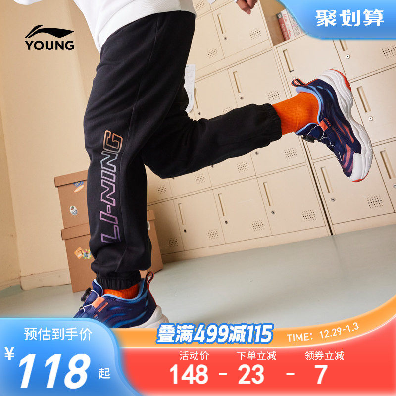 李宁儿童束脚针织卫裤2025新款男童装女童秋冬款男童装中大童裤子